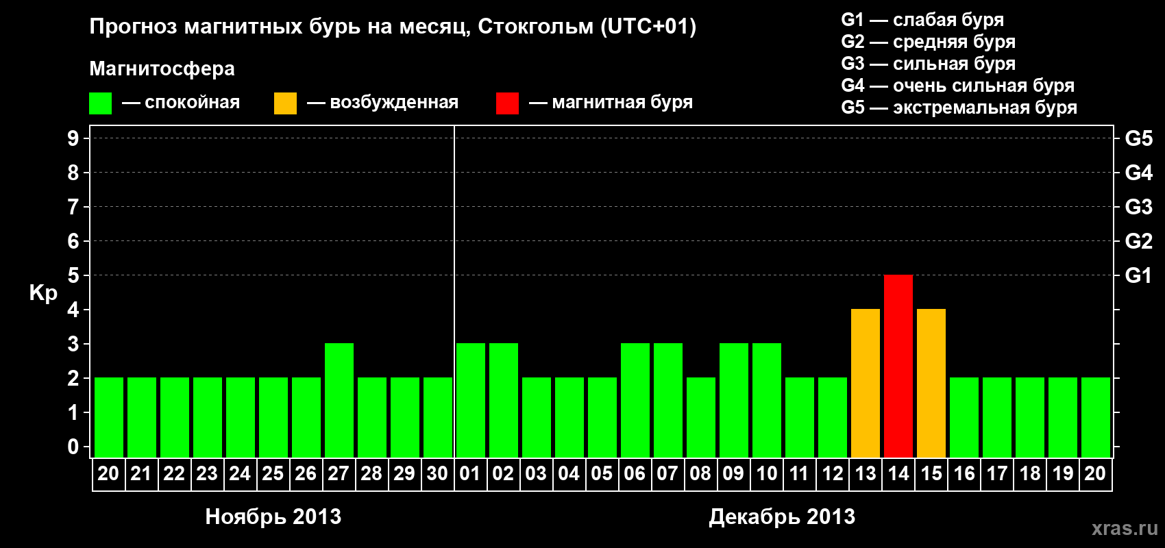 Прогноз магнитных бурь в Стокгольме — 20 ноября 2013 года