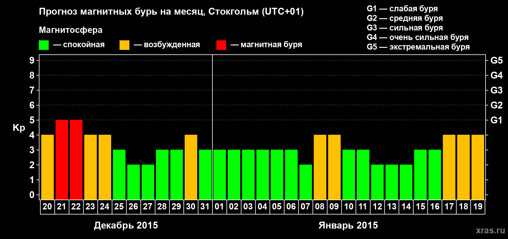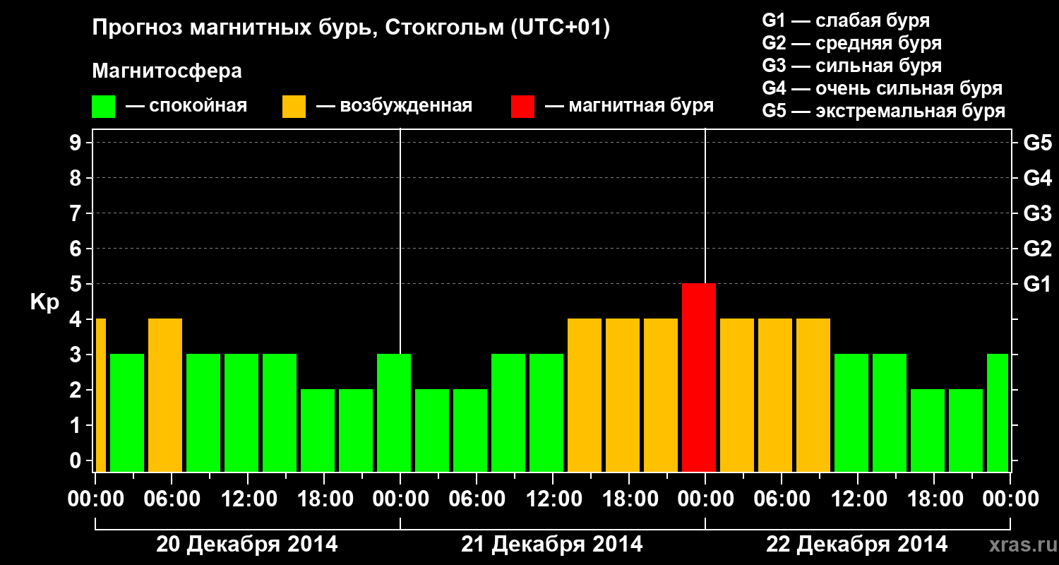 Прогноз магнитных бурь в Стокгольме — 20 декабря 2014 года