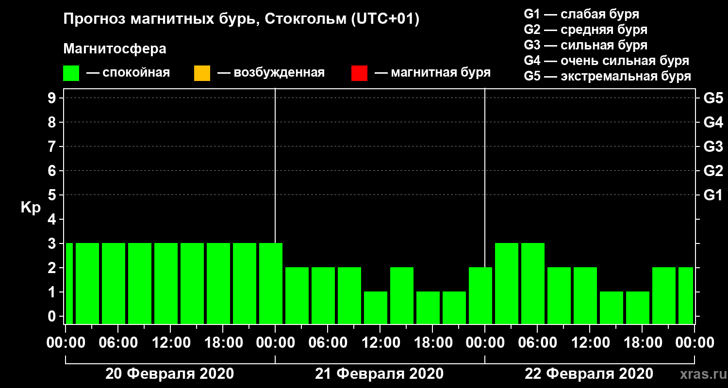 Прогноз магнитных бурь в Стокгольме — 20 февраля 2020 года