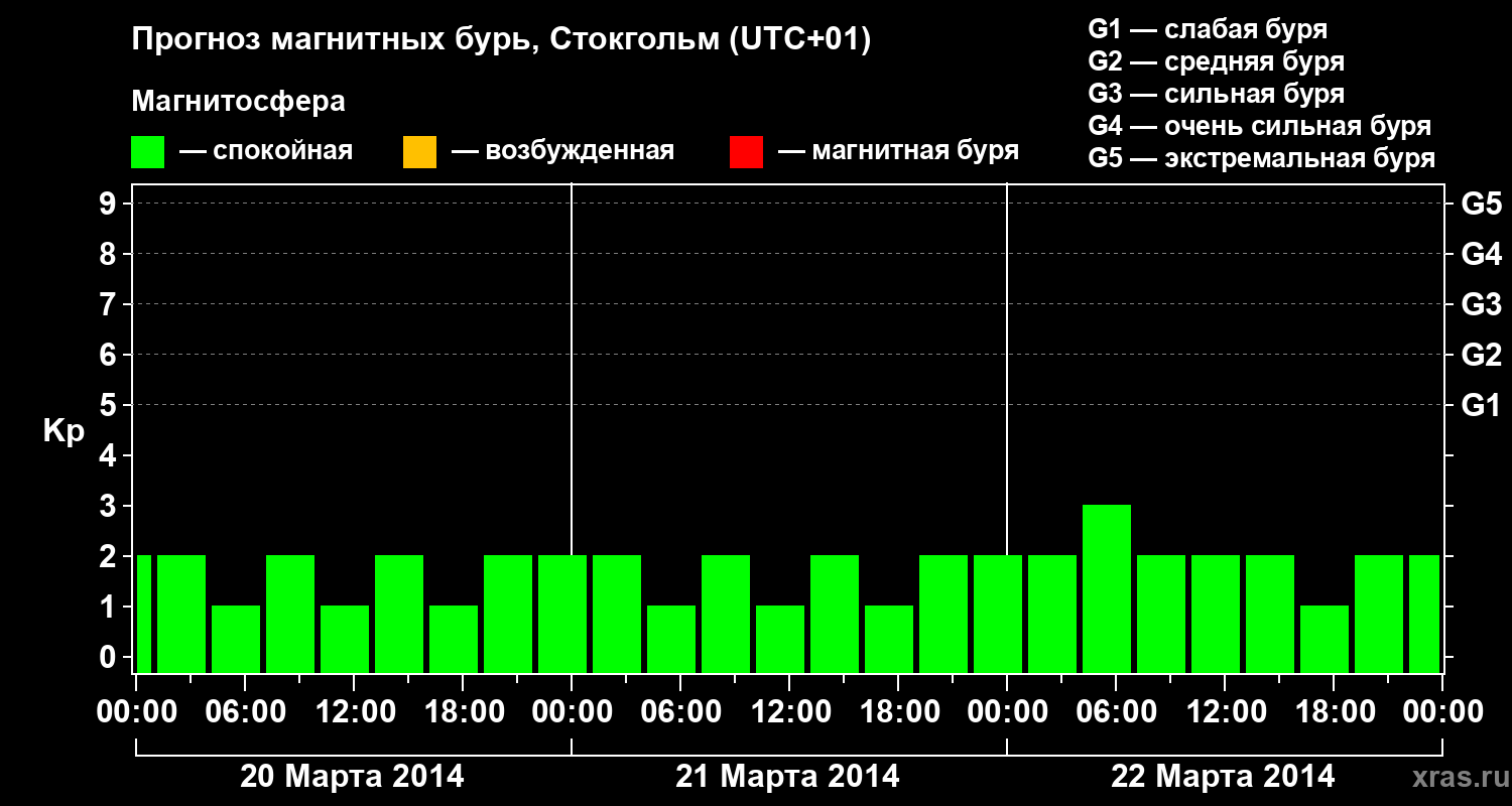 Прогноз магнитных бурь в Стокгольме — 20 марта 2014 года