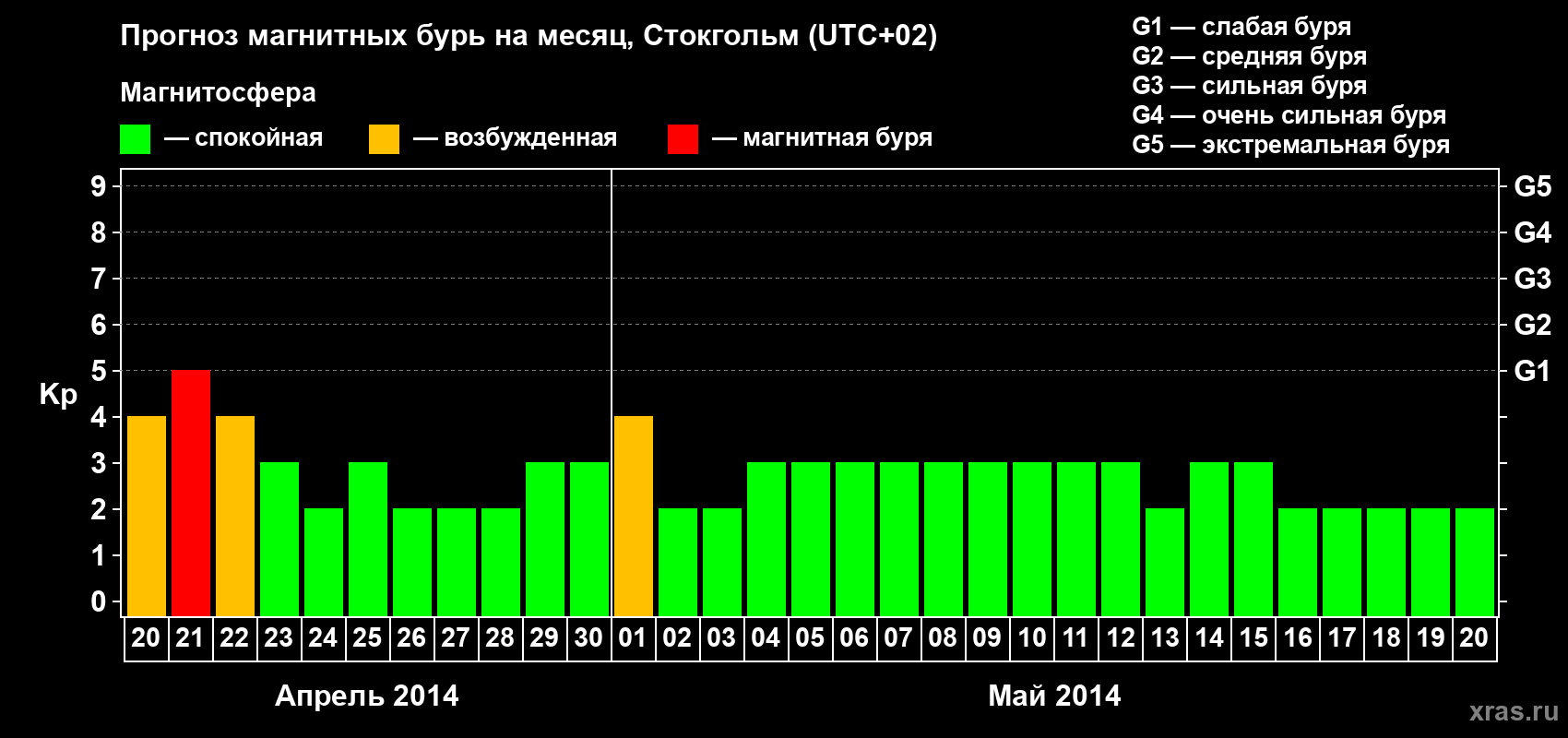 Прогноз магнитных бурь в Стокгольме — 20 апреля 2014 года