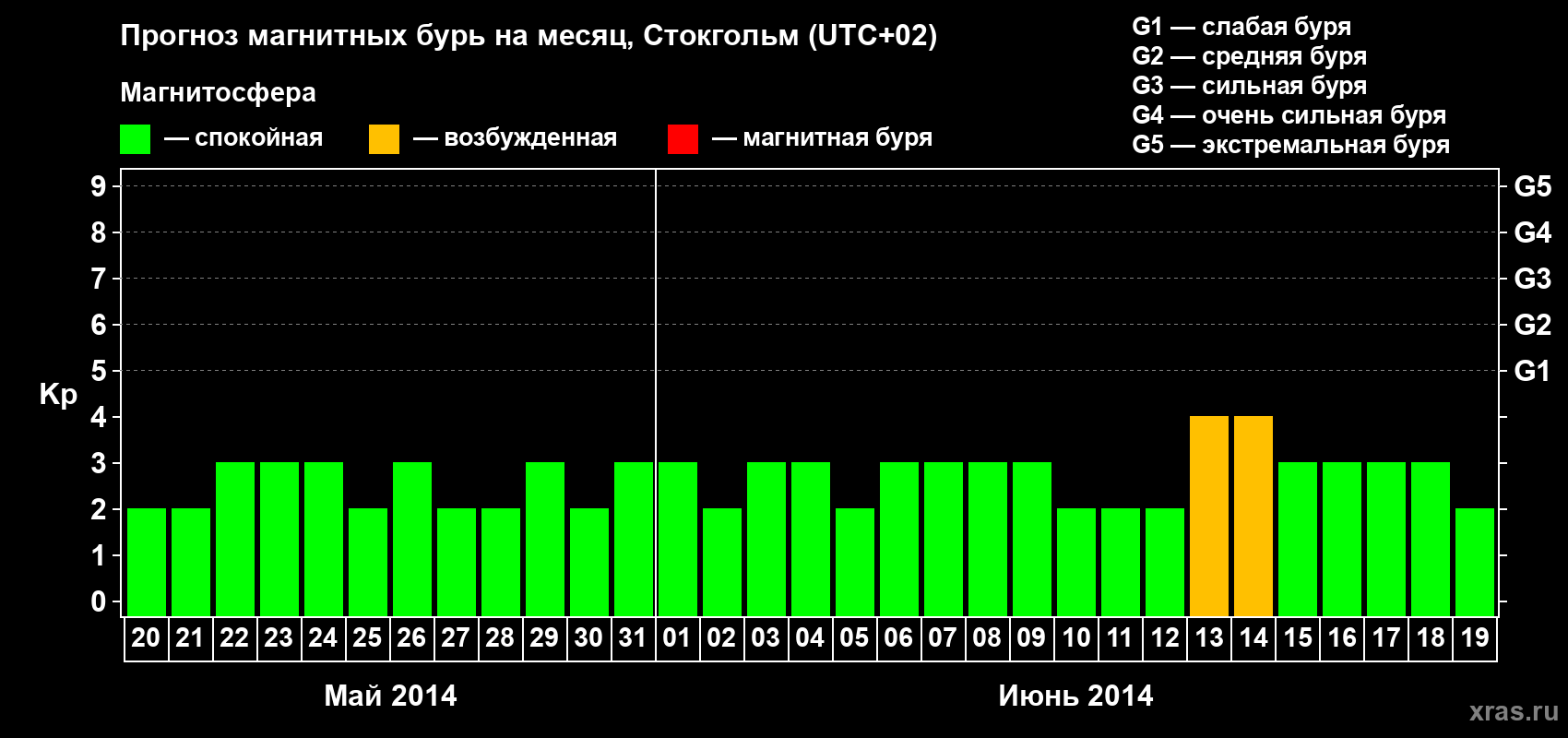 Прогноз магнитных бурь в Стокгольме — 20 мая 2014 года