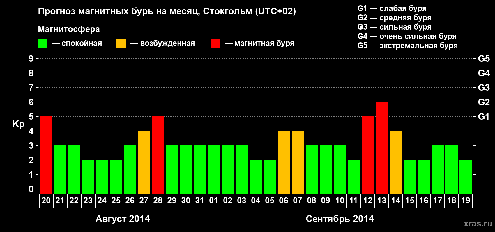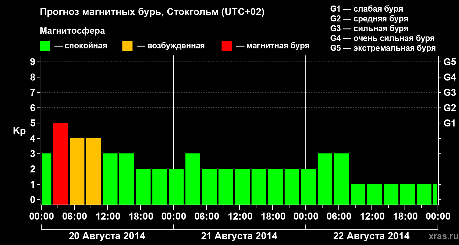 Прогноз магнитных бурь в Стокгольме — 20 августа 2014 года