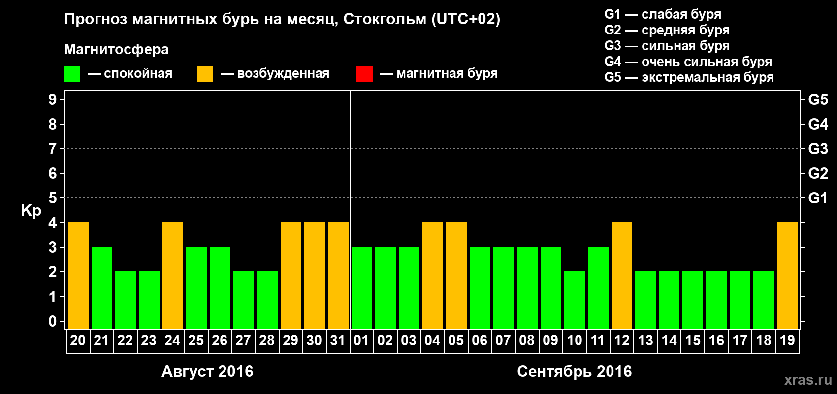 Прогноз магнитных бурь в Стокгольме — 20 августа 2016 года
