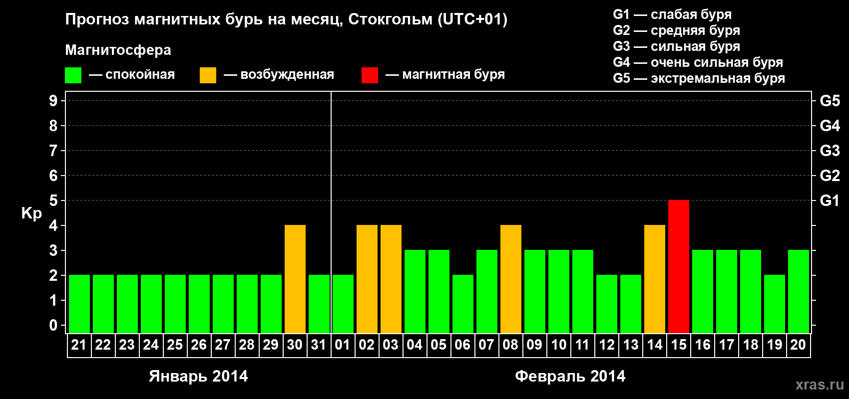 Прогноз магнитных бурь в Стокгольме — 21 января 2014 года