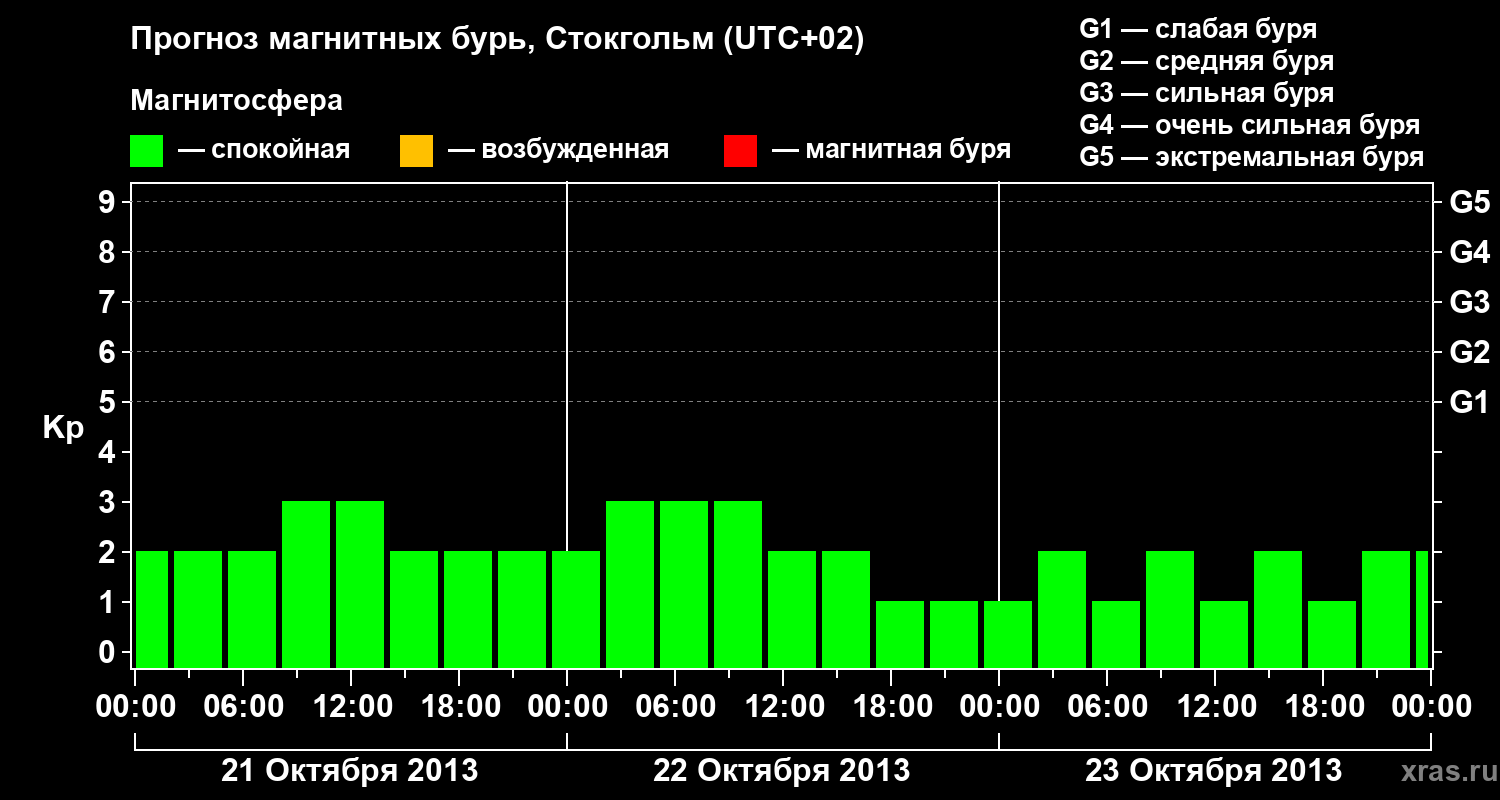 Прогноз магнитных бурь в Стокгольме — 21 октября 2013 года