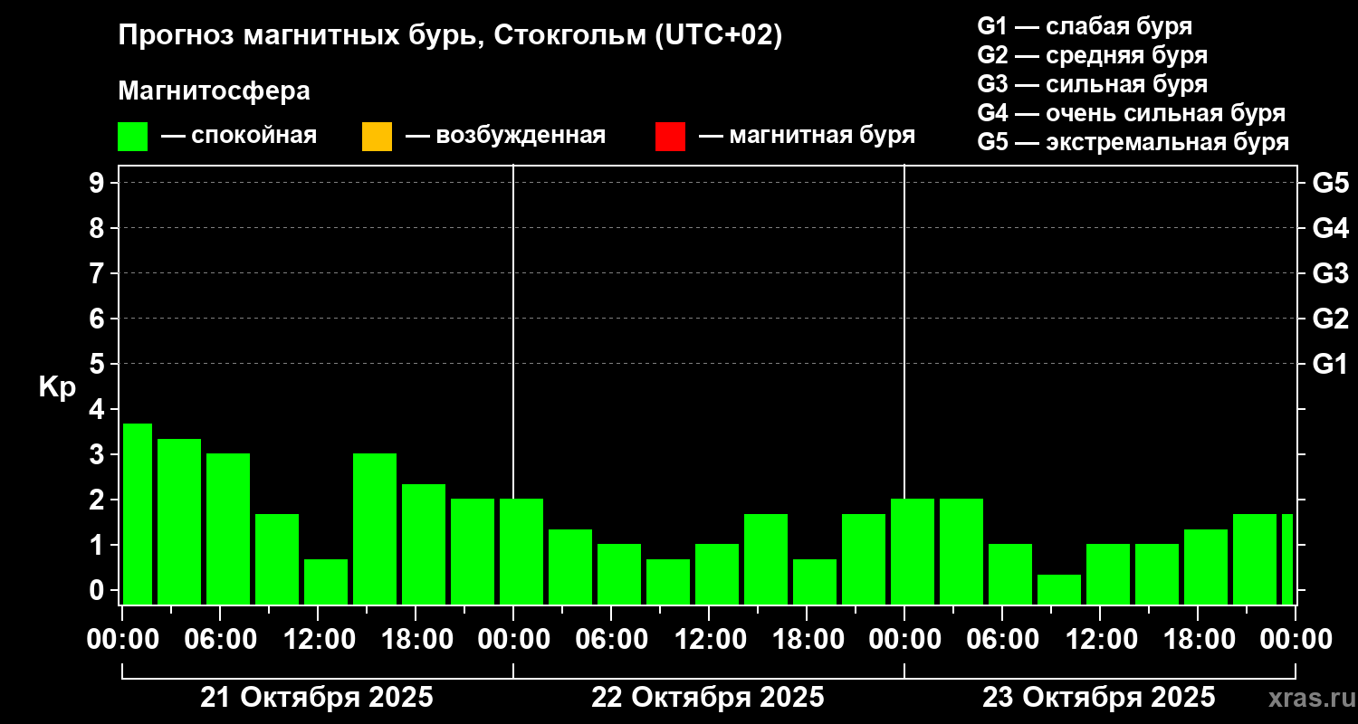 Прогноз магнитных бурь в Стокгольме — 21 октября 2025 года
