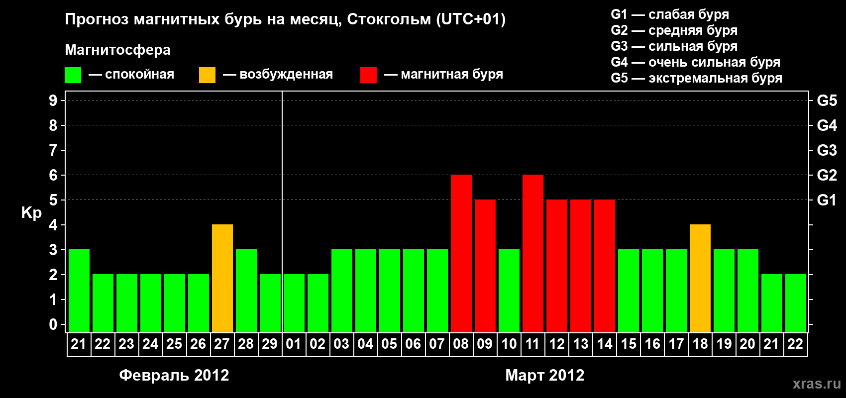 Прогноз магнитных бурь в Стокгольме — 21 февраля 2012 года