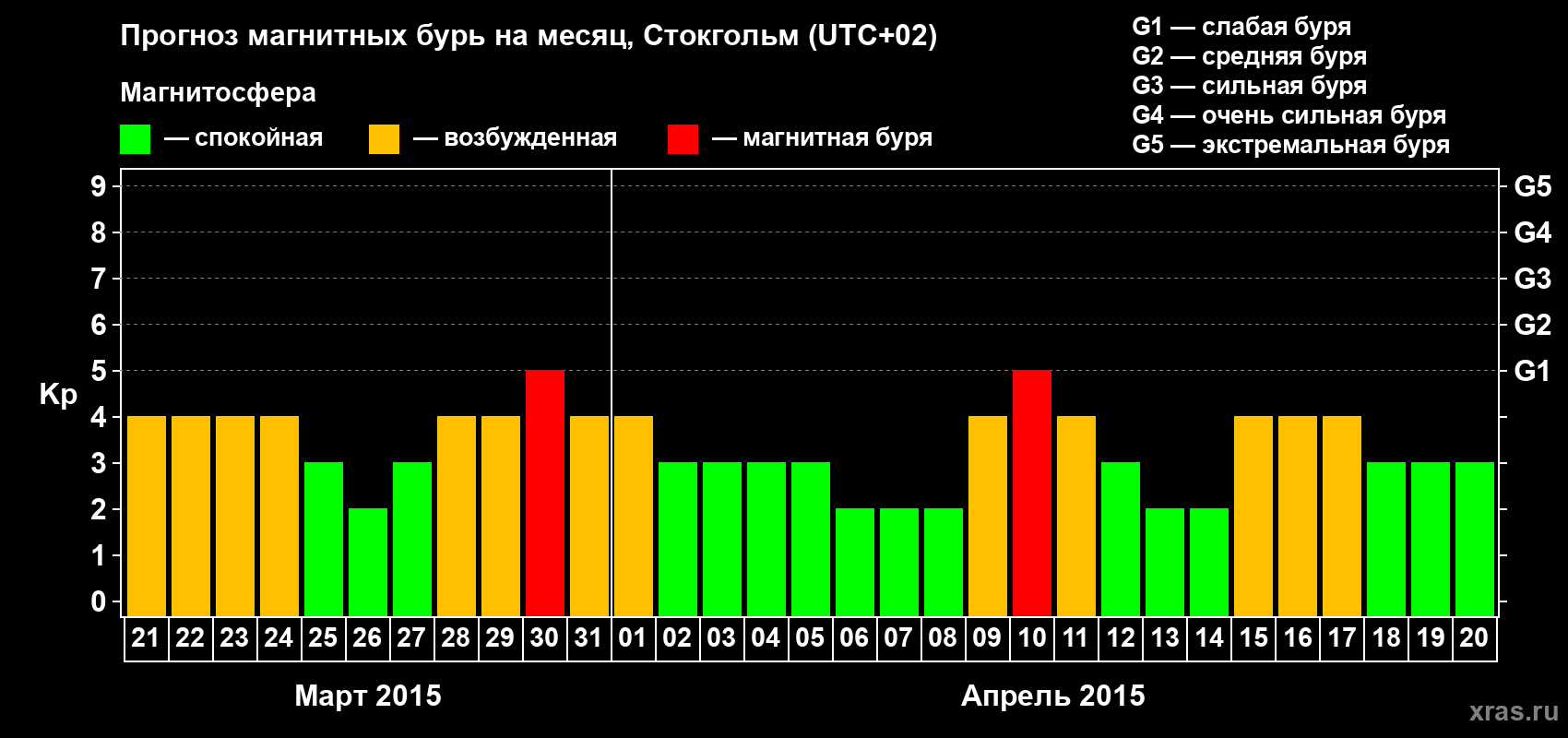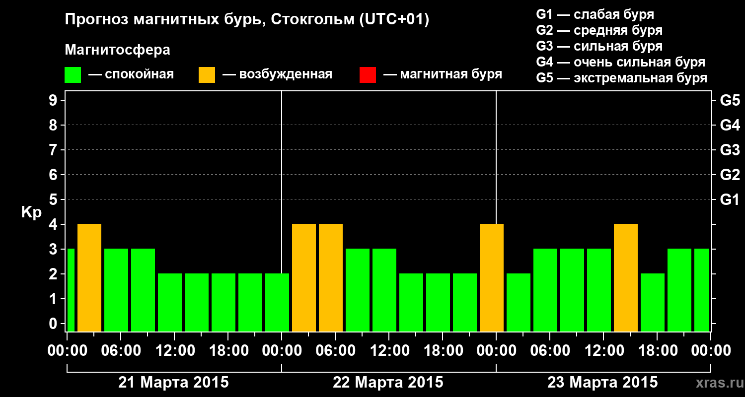 Прогноз магнитных бурь в Стокгольме — 21 марта 2015 года