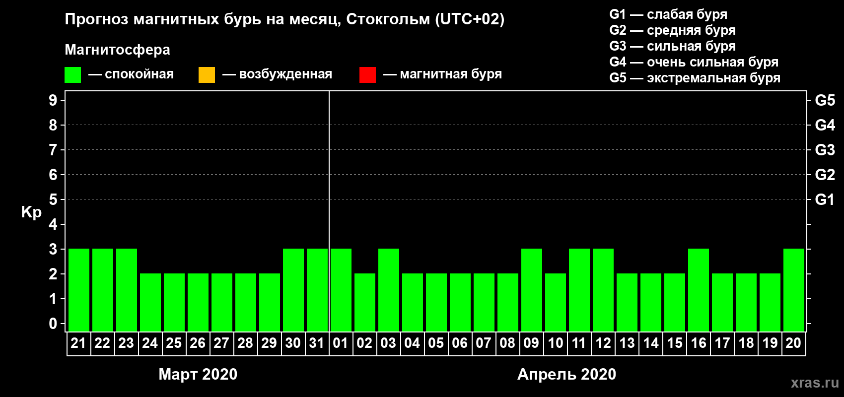 Прогноз магнитных бурь в Стокгольме — 21 марта 2020 года