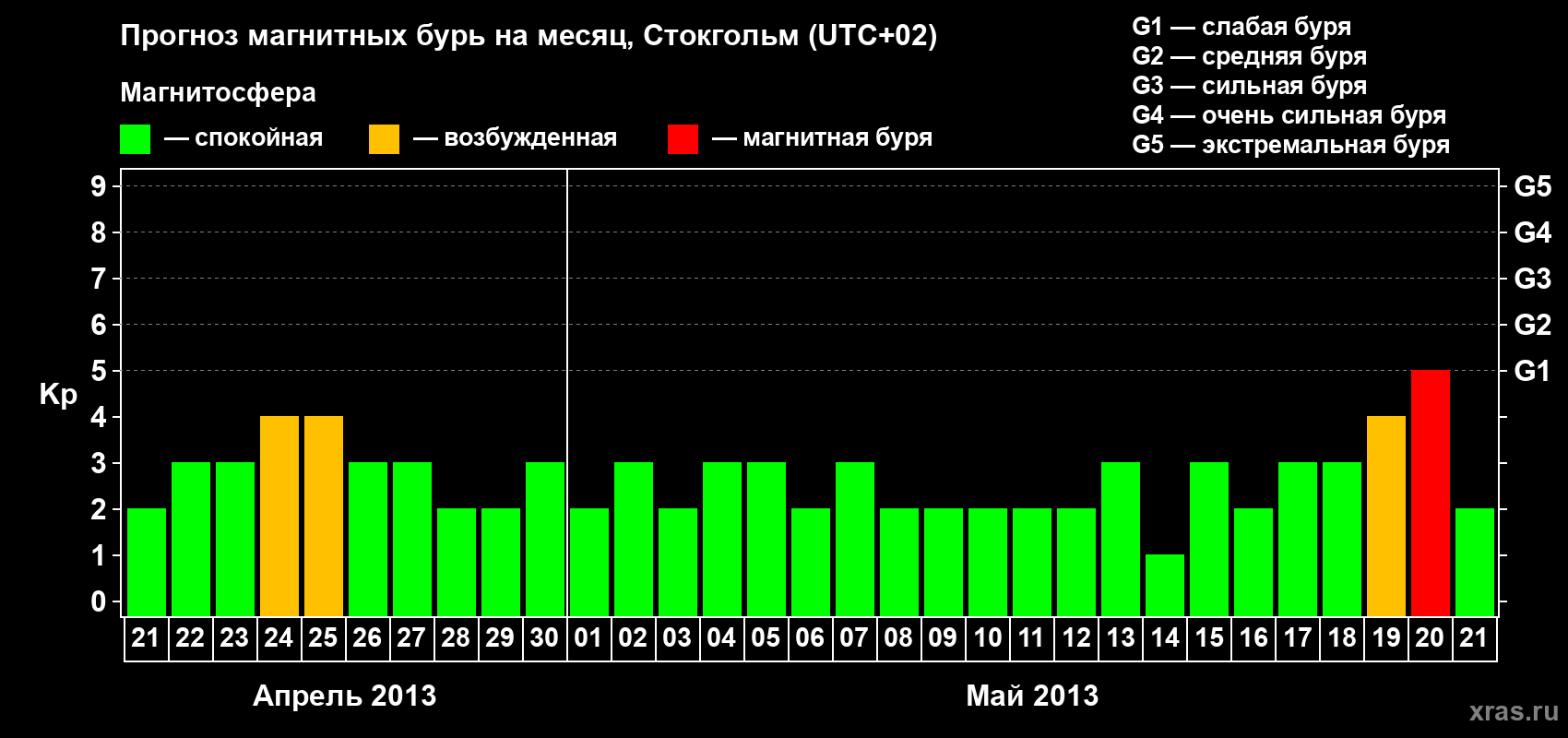 Прогноз магнитных бурь в Стокгольме — 21 апреля 2013 года