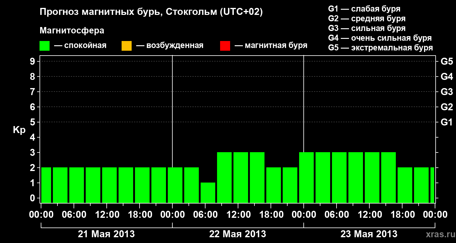 Прогноз магнитных бурь в Стокгольме — 21 мая 2013 года