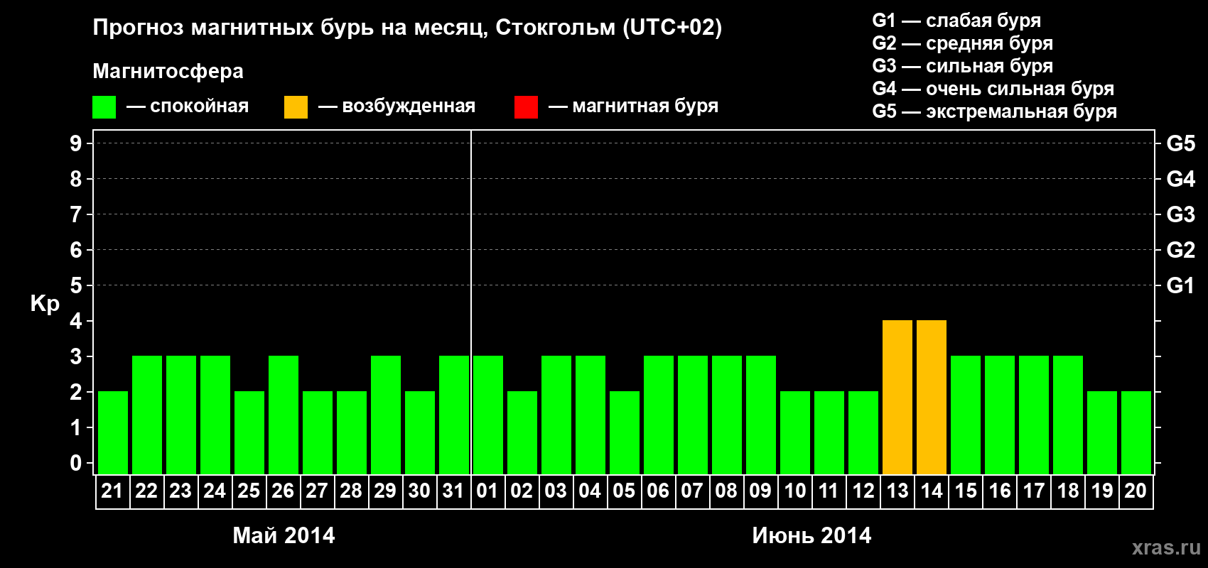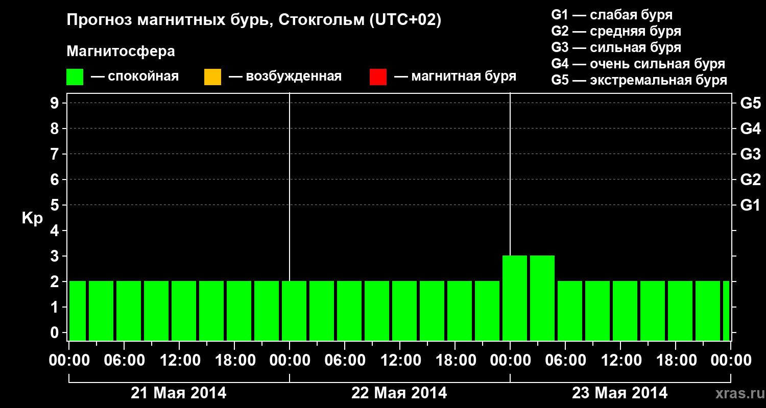 Прогноз магнитных бурь в Стокгольме — 21 мая 2014 года