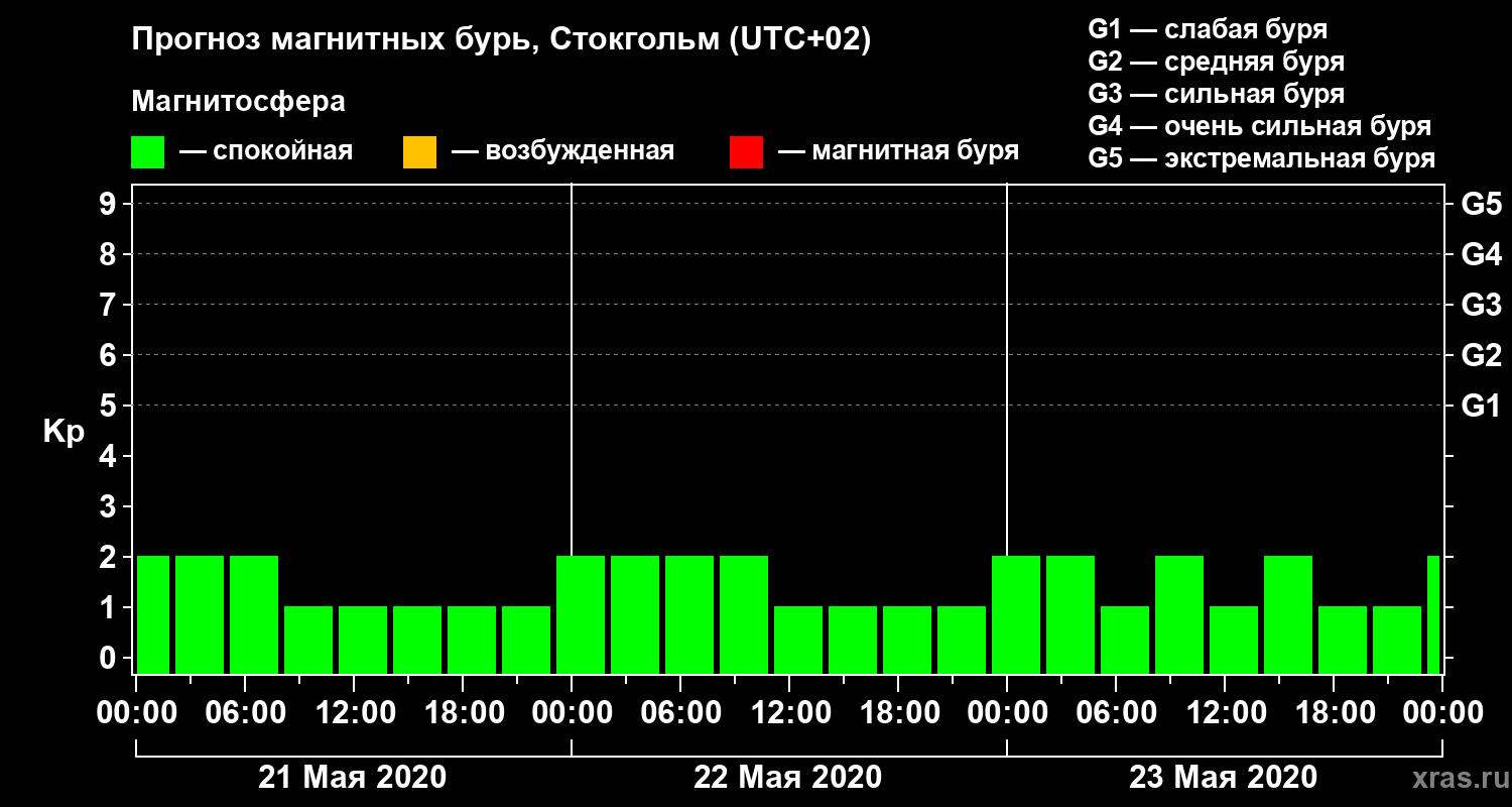 Прогноз магнитных бурь в Стокгольме — 21 мая 2020 года