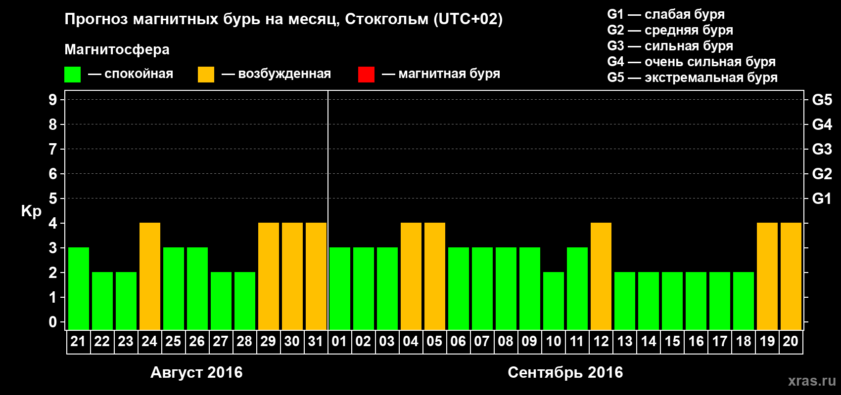 Прогноз магнитных бурь в Стокгольме — 21 августа 2016 года