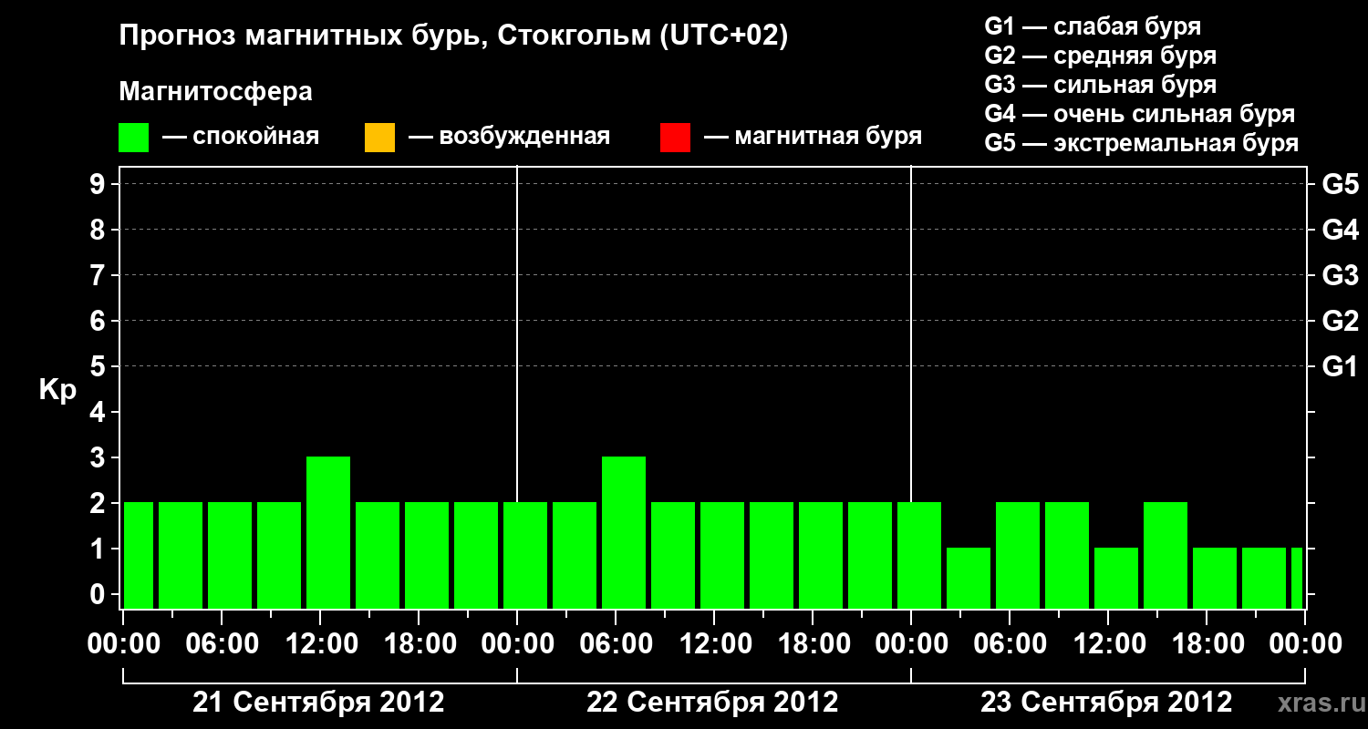 Прогноз магнитных бурь в Стокгольме — 21 сентября 2012 года