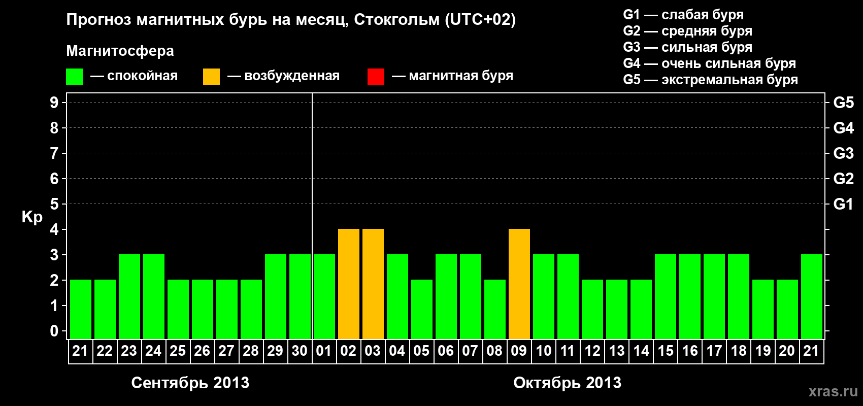 Прогноз магнитных бурь в Стокгольме — 21 сентября 2013 года