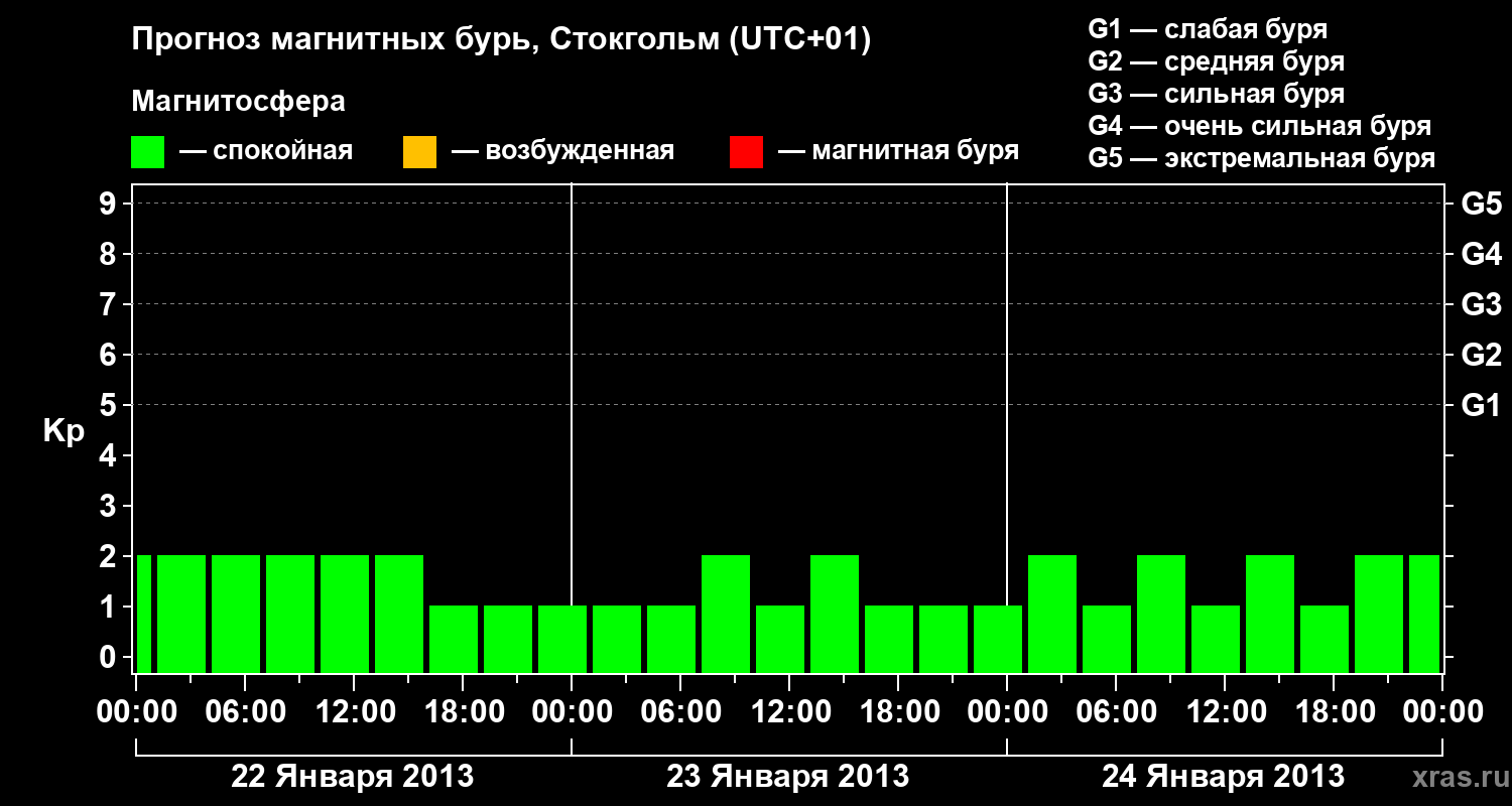 Прогноз магнитных бурь в Стокгольме — 22 января 2013 года