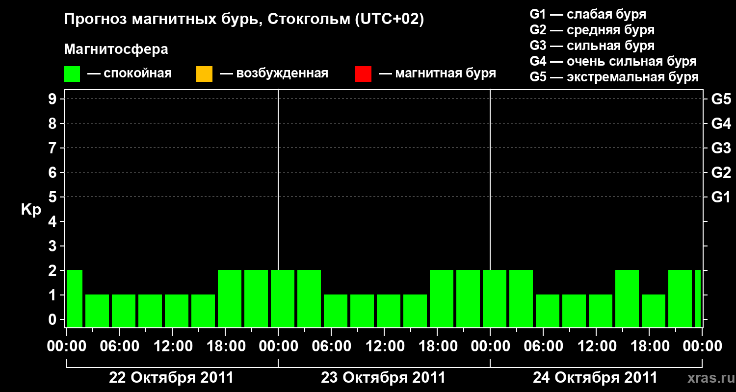 Прогноз магнитных бурь в Стокгольме — 22 октября 2011 года