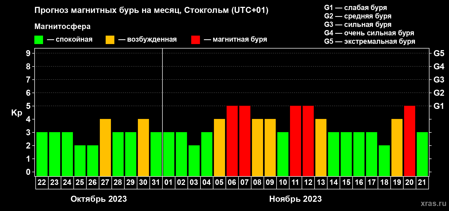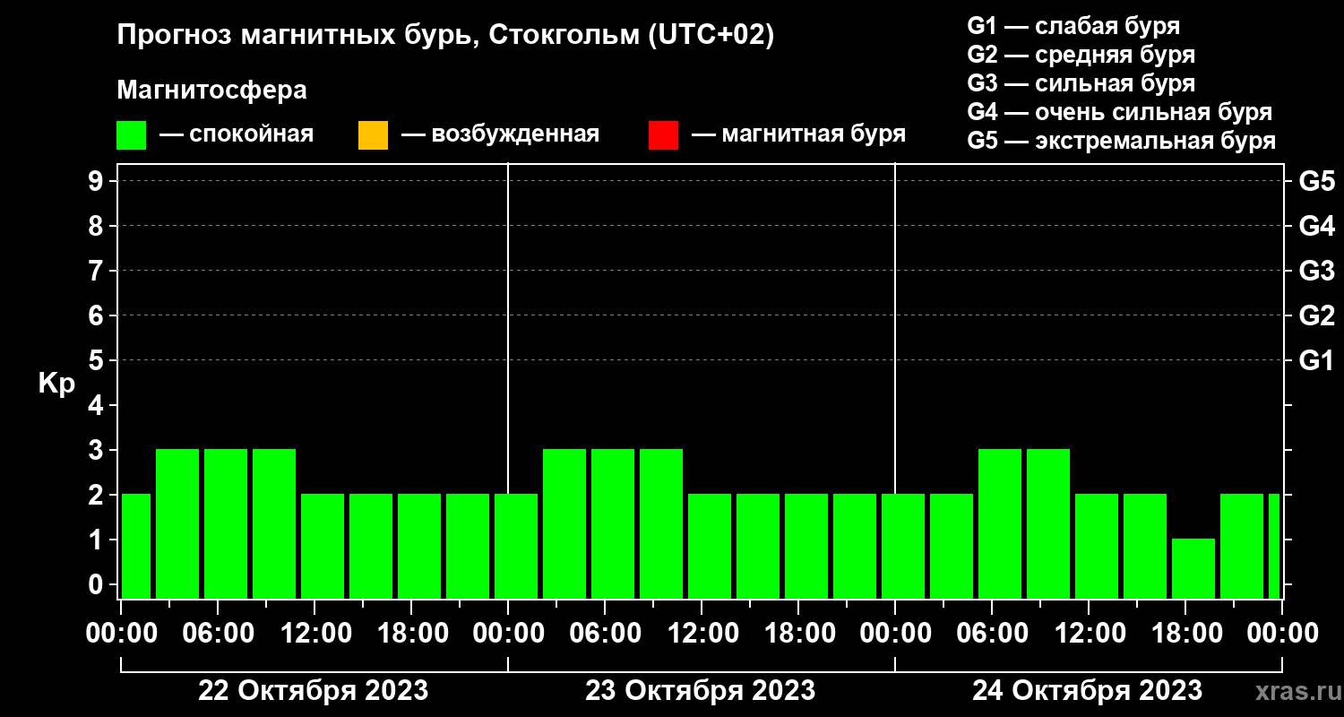 Прогноз магнитных бурь в Стокгольме — 22 октября 2023 года