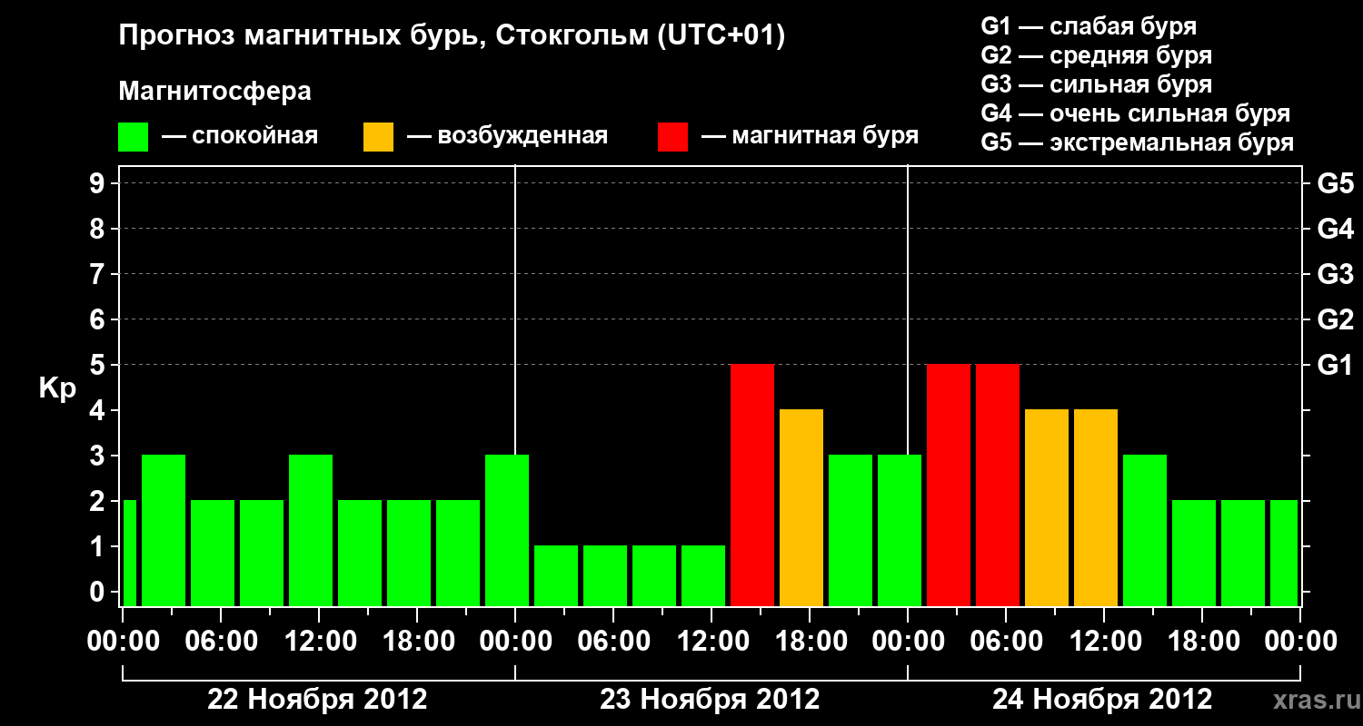 Прогноз магнитных бурь в Стокгольме — 22 ноября 2012 года