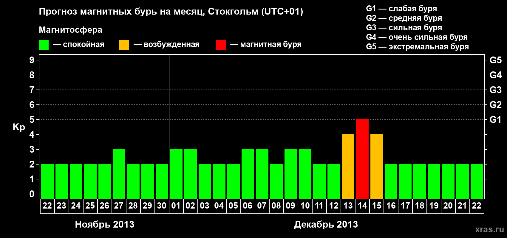 Прогноз магнитных бурь в Стокгольме — 22 ноября 2013 года