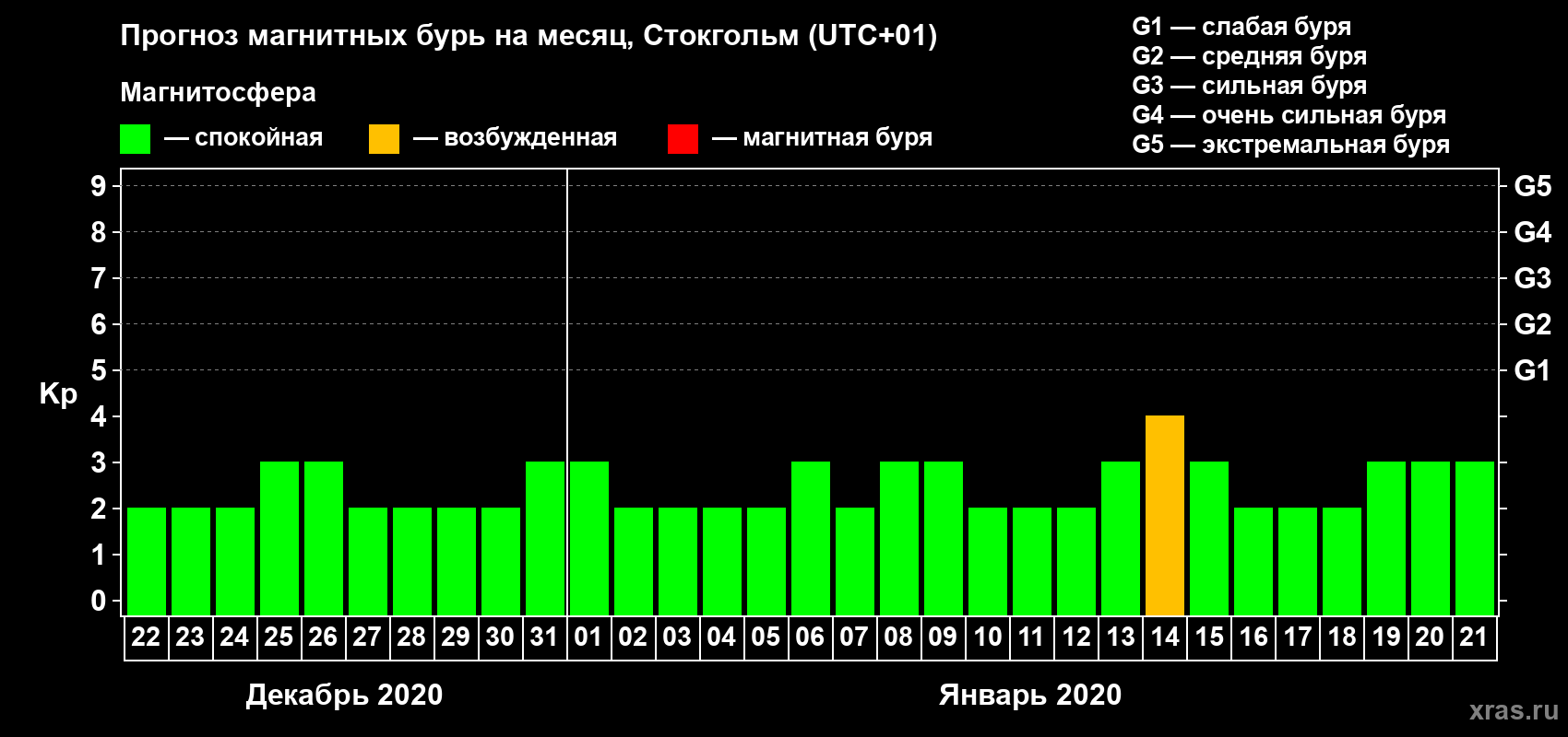 Прогноз магнитных бурь в Стокгольме — 22 декабря 2019 года