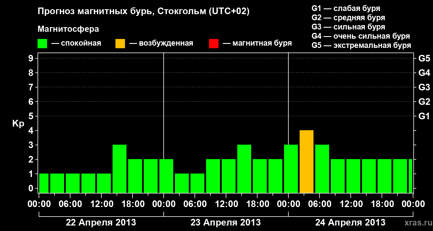 Прогноз магнитных бурь в Стокгольме — 22 апреля 2013 года