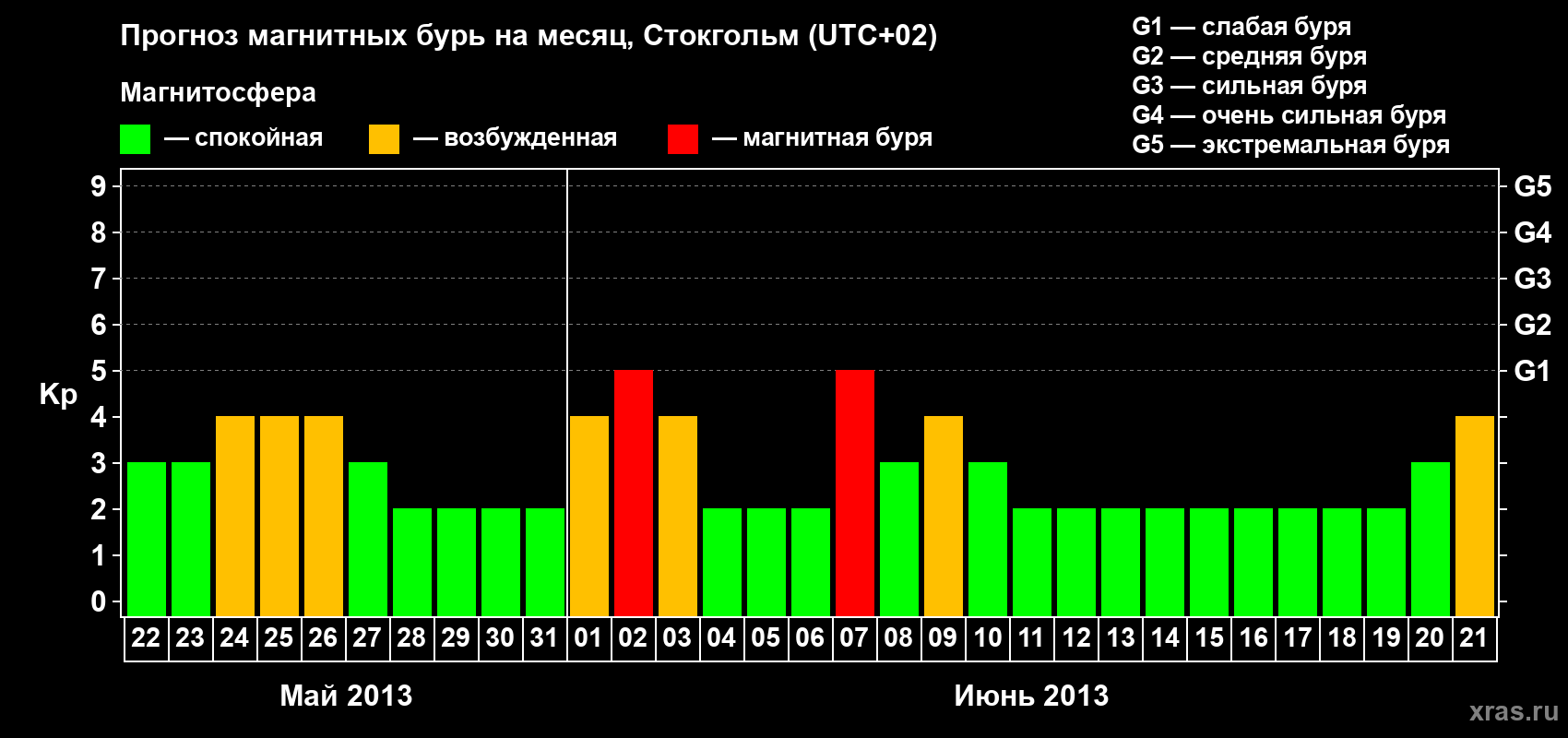 Прогноз магнитных бурь в Стокгольме — 22 мая 2013 года