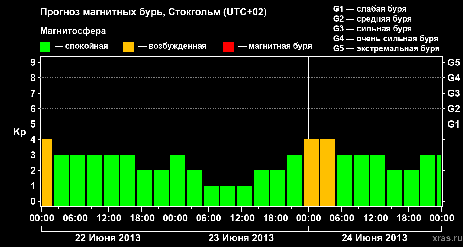 Прогноз магнитных бурь в Стокгольме — 22 июня 2013 года