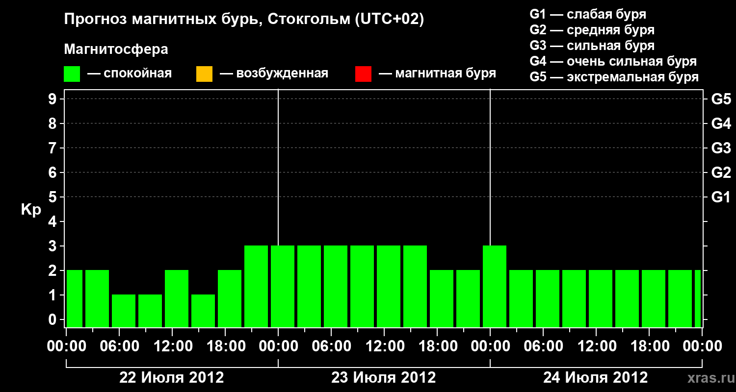 Прогноз магнитных бурь в Стокгольме — 22 июля 2012 года