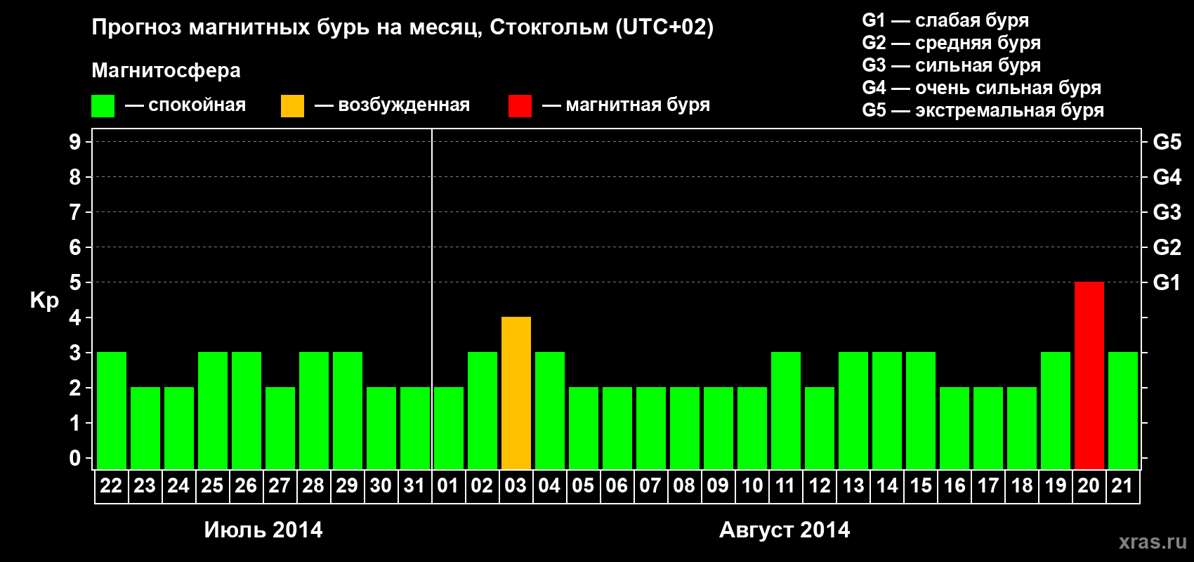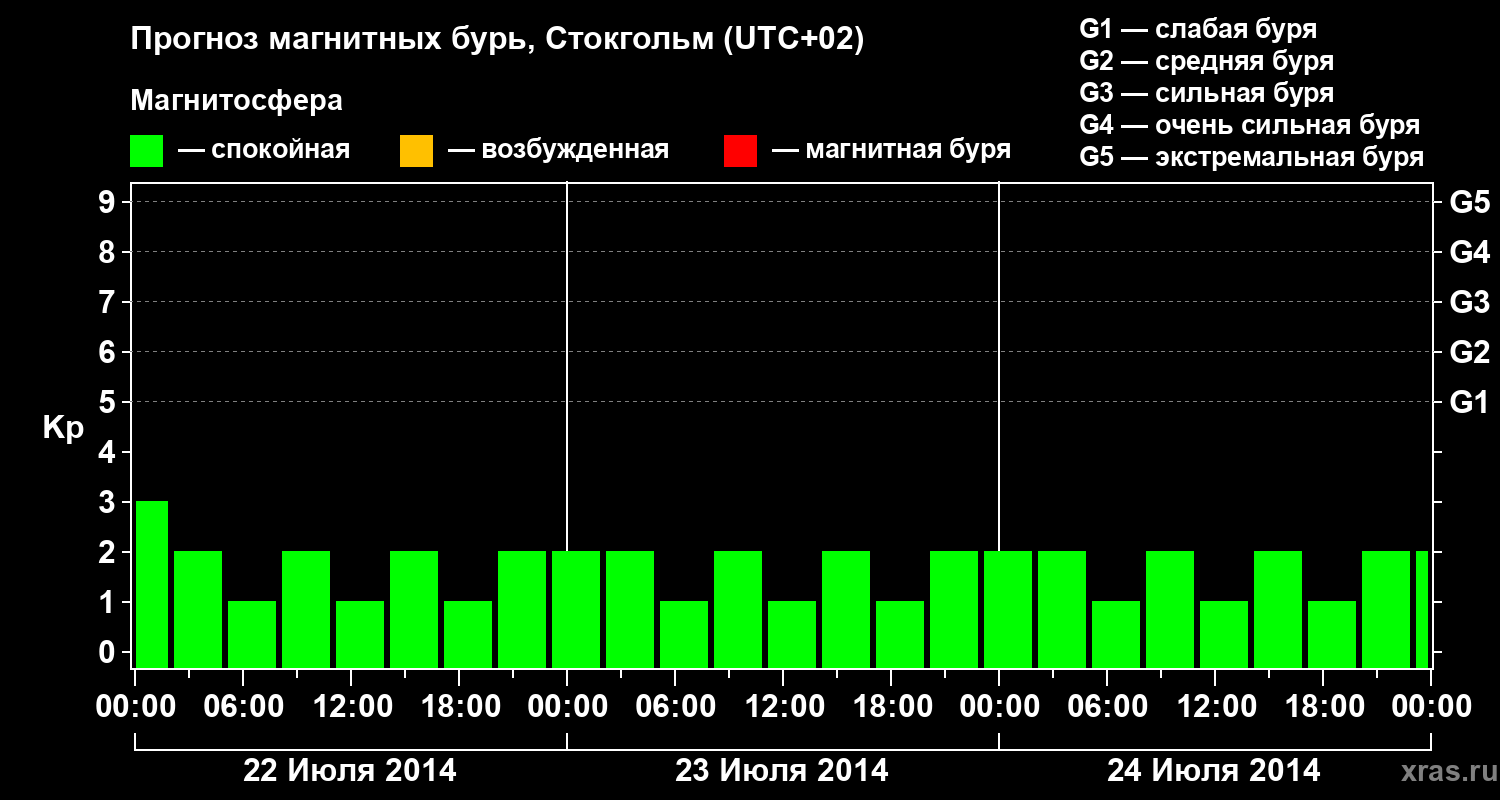Прогноз магнитных бурь в Стокгольме — 22 июля 2014 года