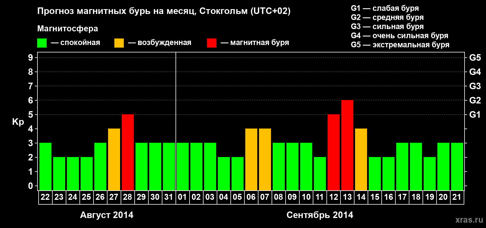 Прогноз магнитных бурь в Стокгольме — 22 августа 2014 года