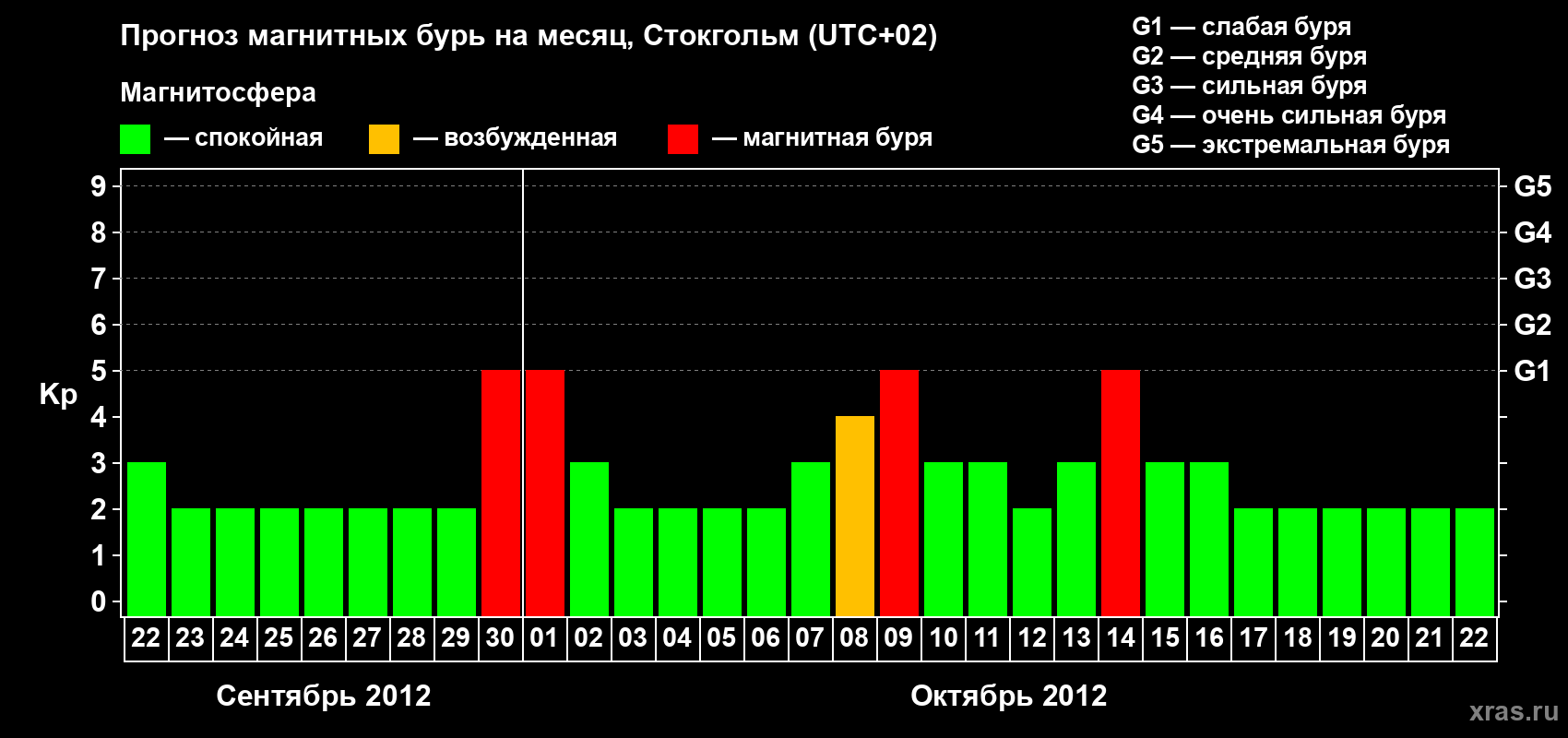 Прогноз магнитных бурь в Стокгольме — 22 сентября 2012 года