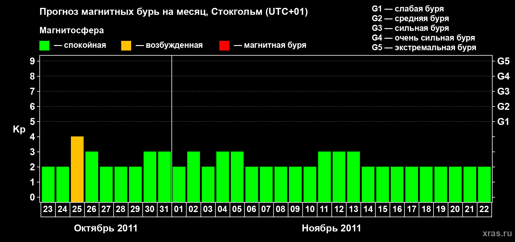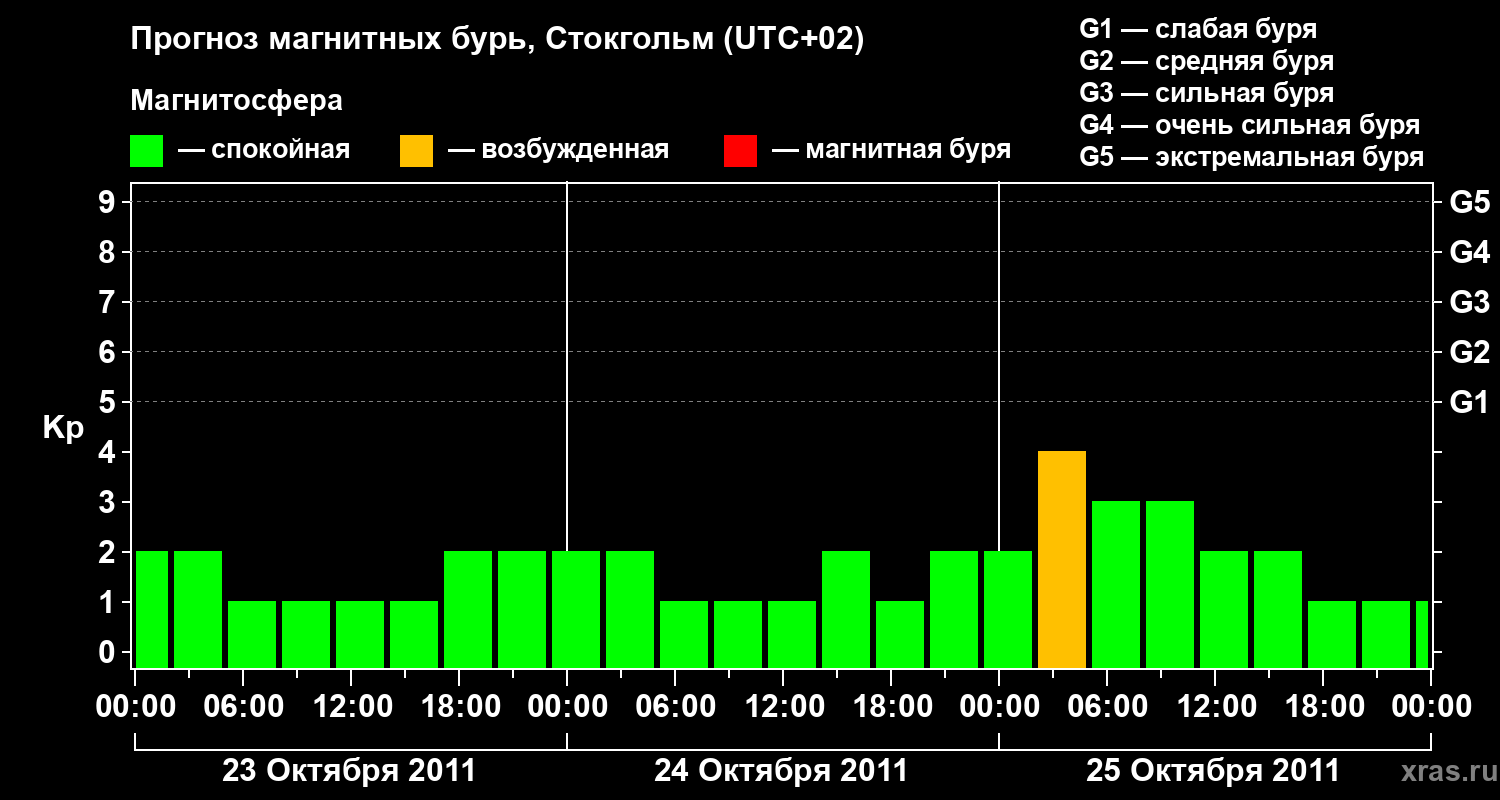 Прогноз магнитных бурь в Стокгольме — 23 октября 2011 года