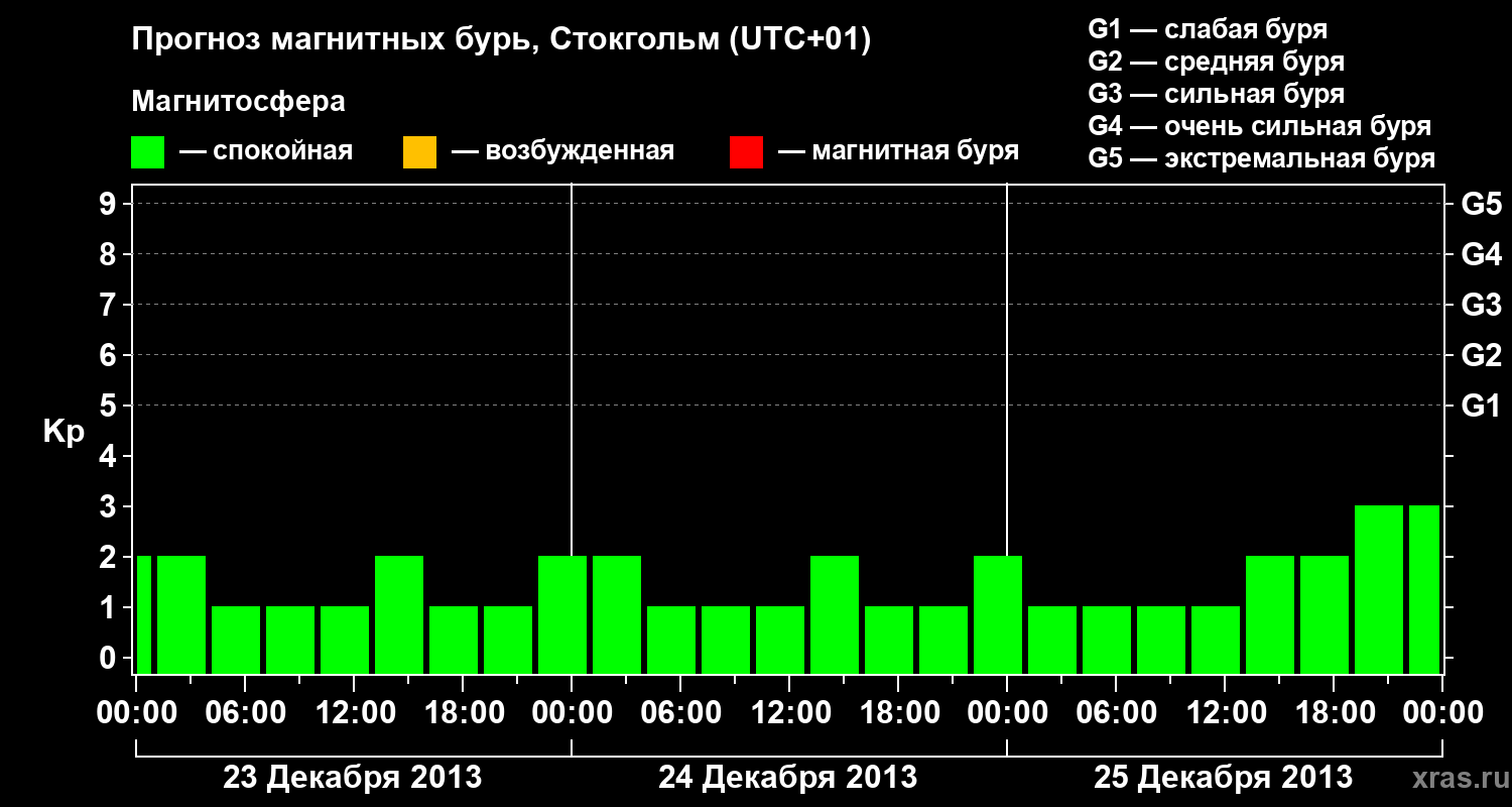 Прогноз магнитных бурь в Стокгольме — 23 декабря 2013 года