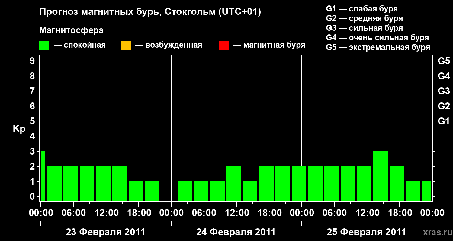 Прогноз магнитных бурь в Стокгольме — 23 февраля 2011 года