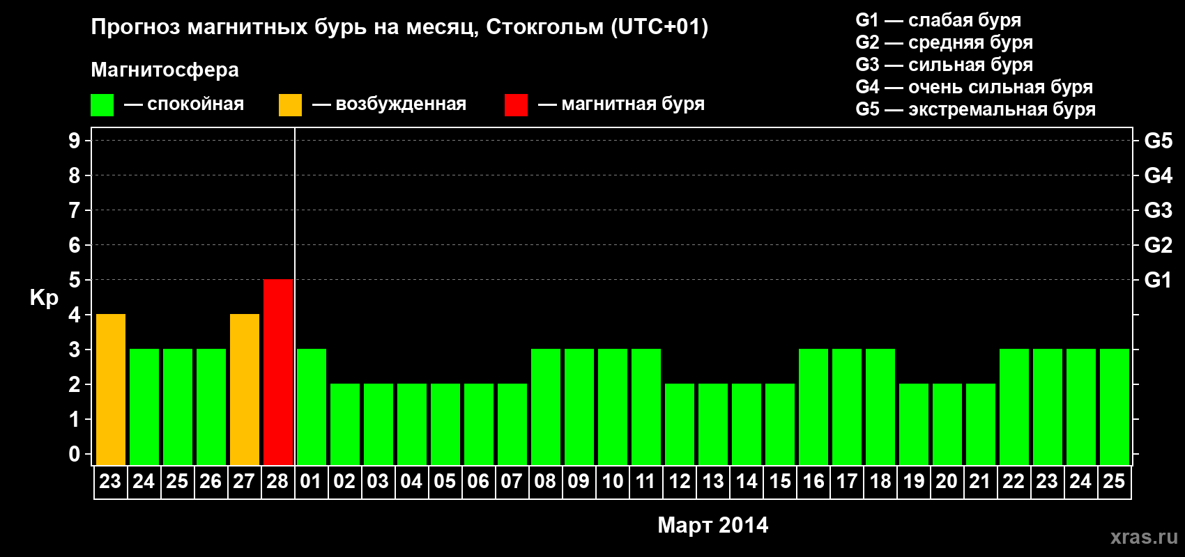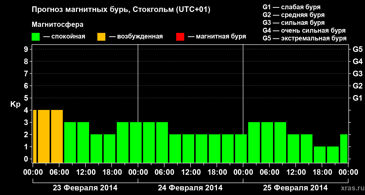 Прогноз магнитных бурь в Стокгольме — 23 февраля 2014 года