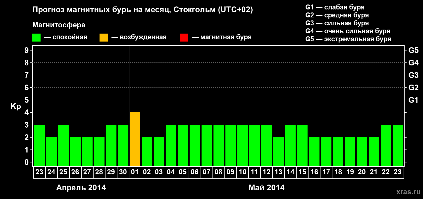 Прогноз магнитных бурь в Стокгольме — 23 апреля 2014 года