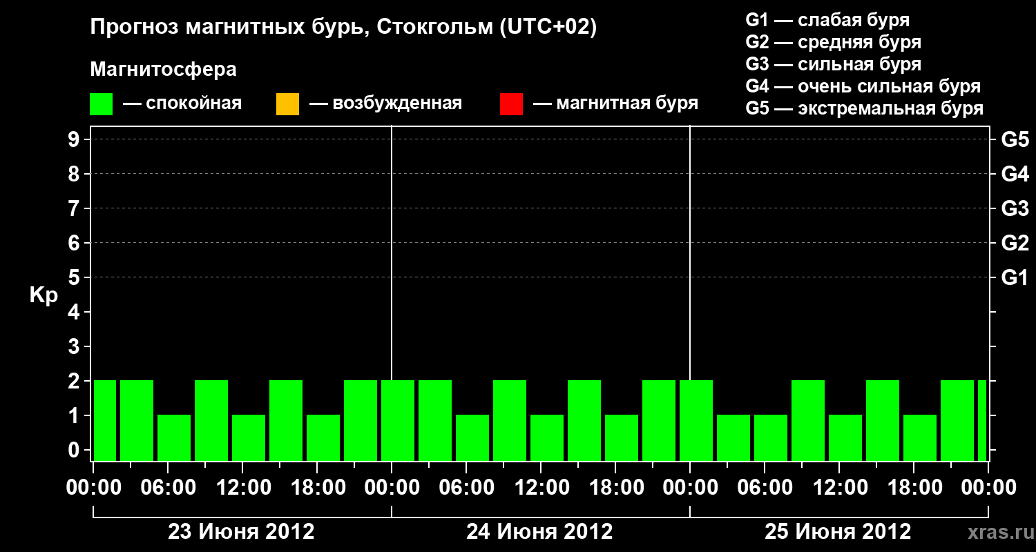 Прогноз магнитных бурь в Стокгольме — 23 июня 2012 года