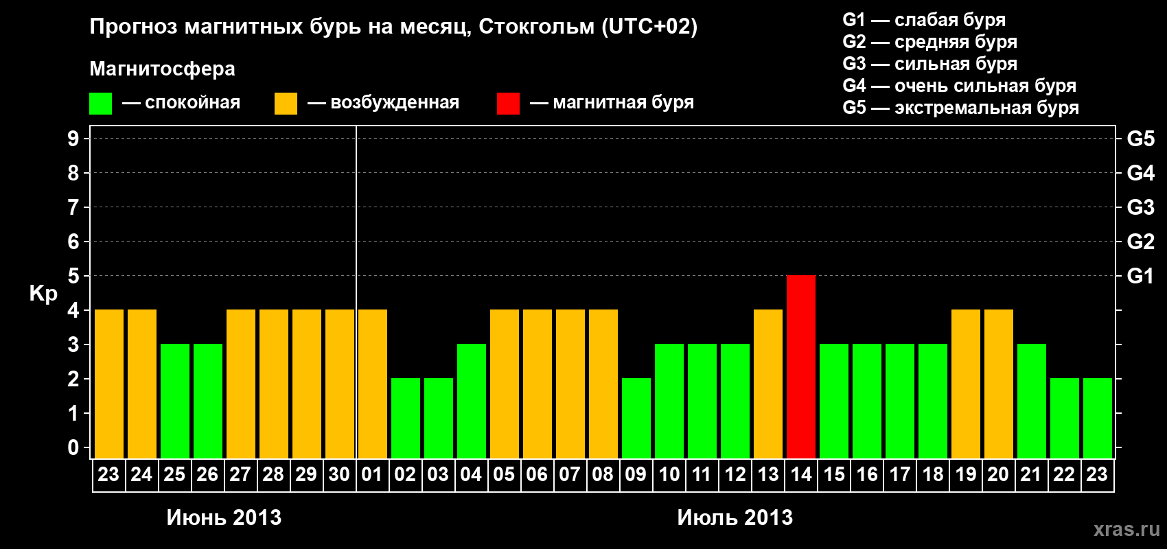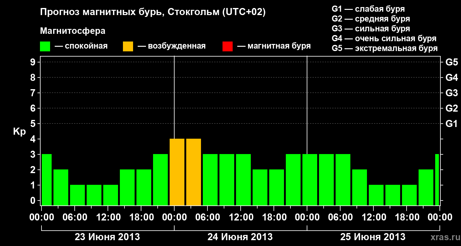Прогноз магнитных бурь в Стокгольме — 23 июня 2013 года