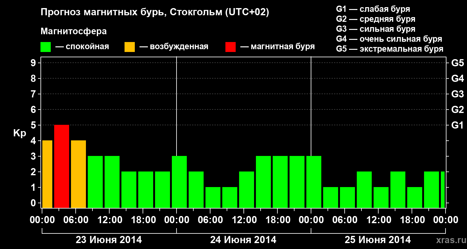 Прогноз магнитных бурь в Стокгольме — 23 июня 2014 года