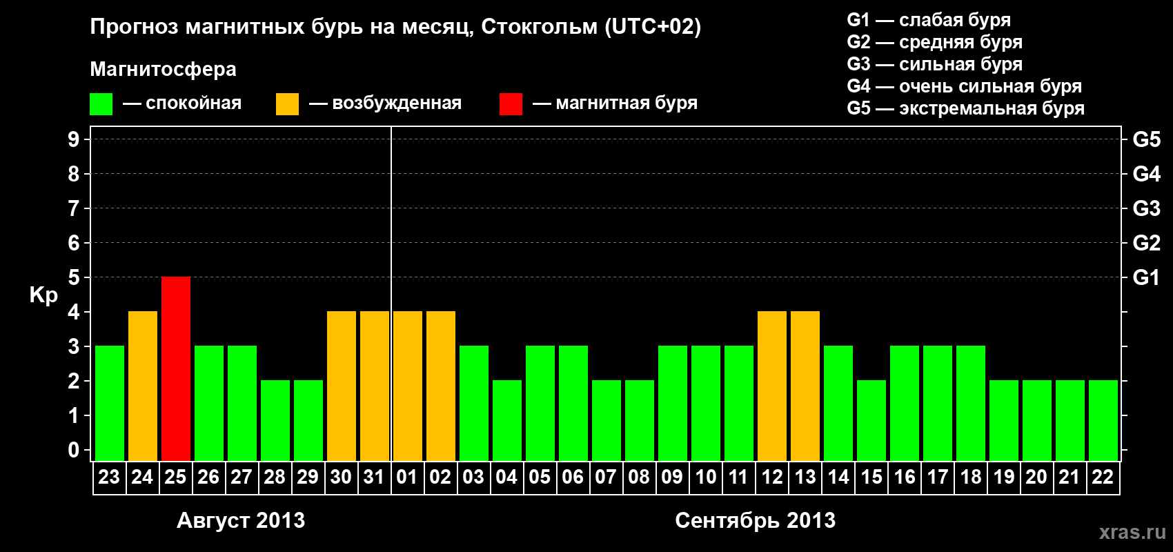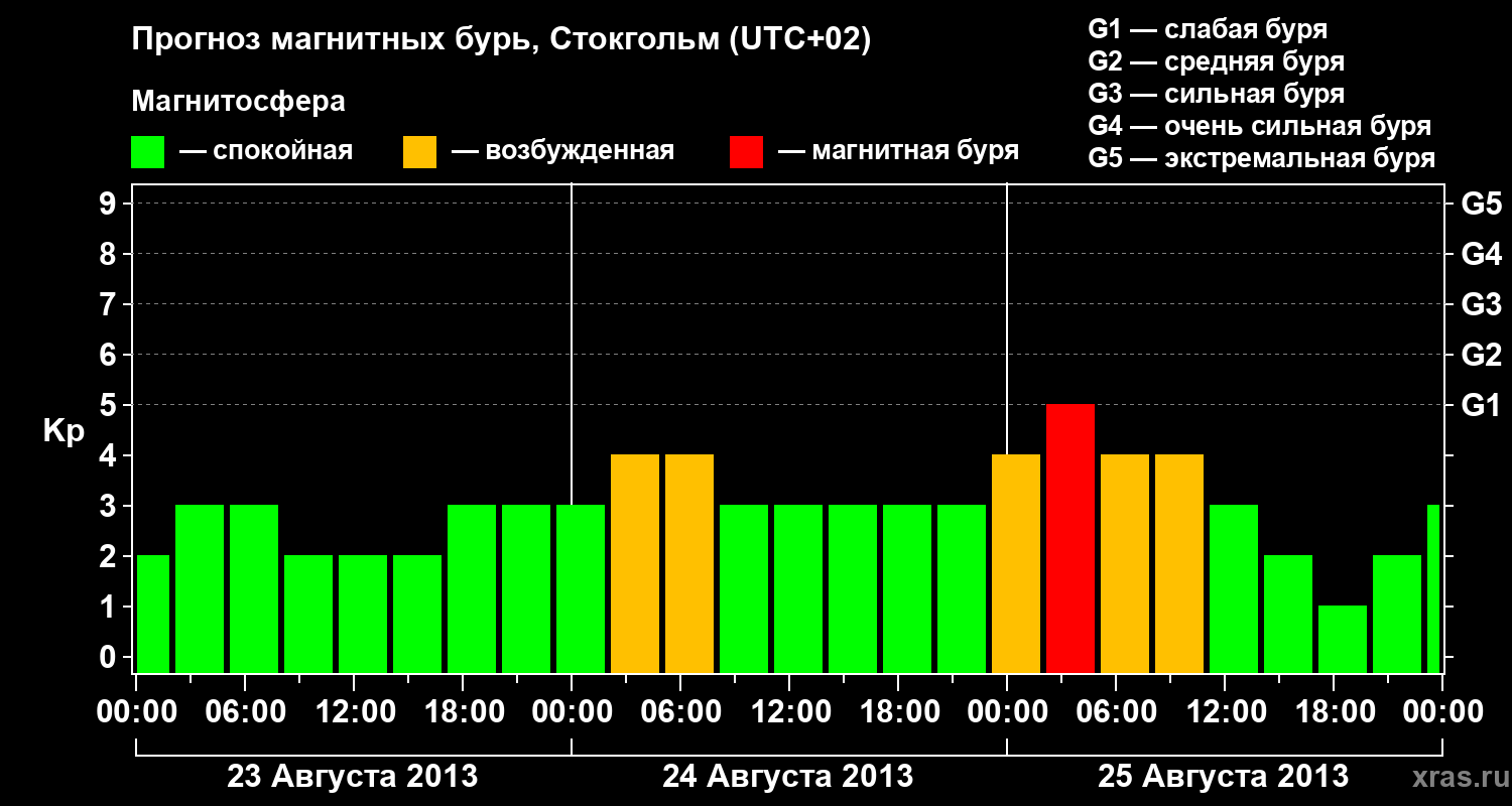 Прогноз магнитных бурь в Стокгольме — 23 августа 2013 года