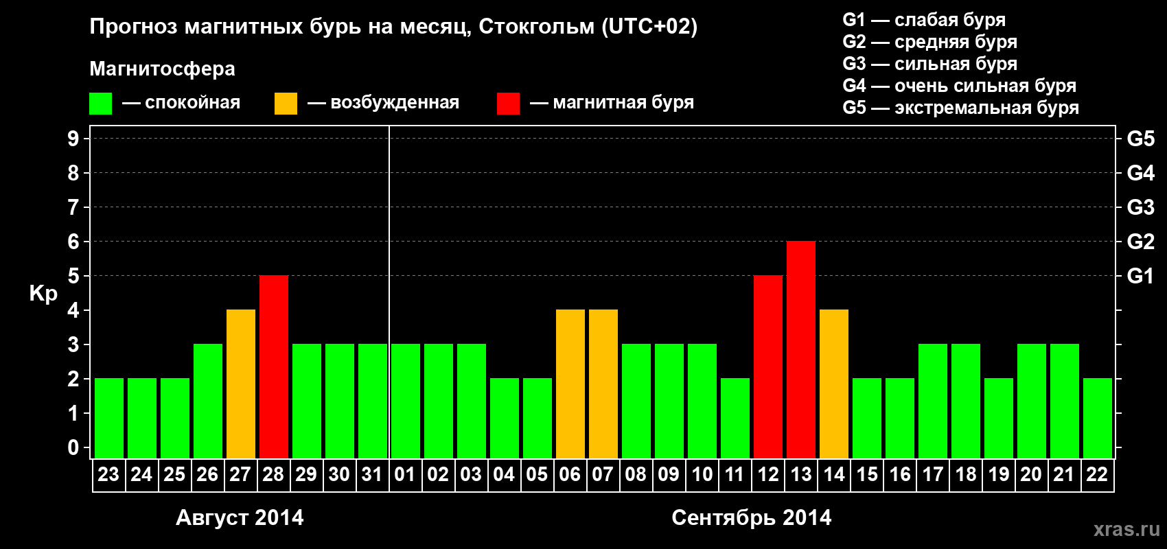 Прогноз магнитных бурь в Стокгольме — 23 августа 2014 года