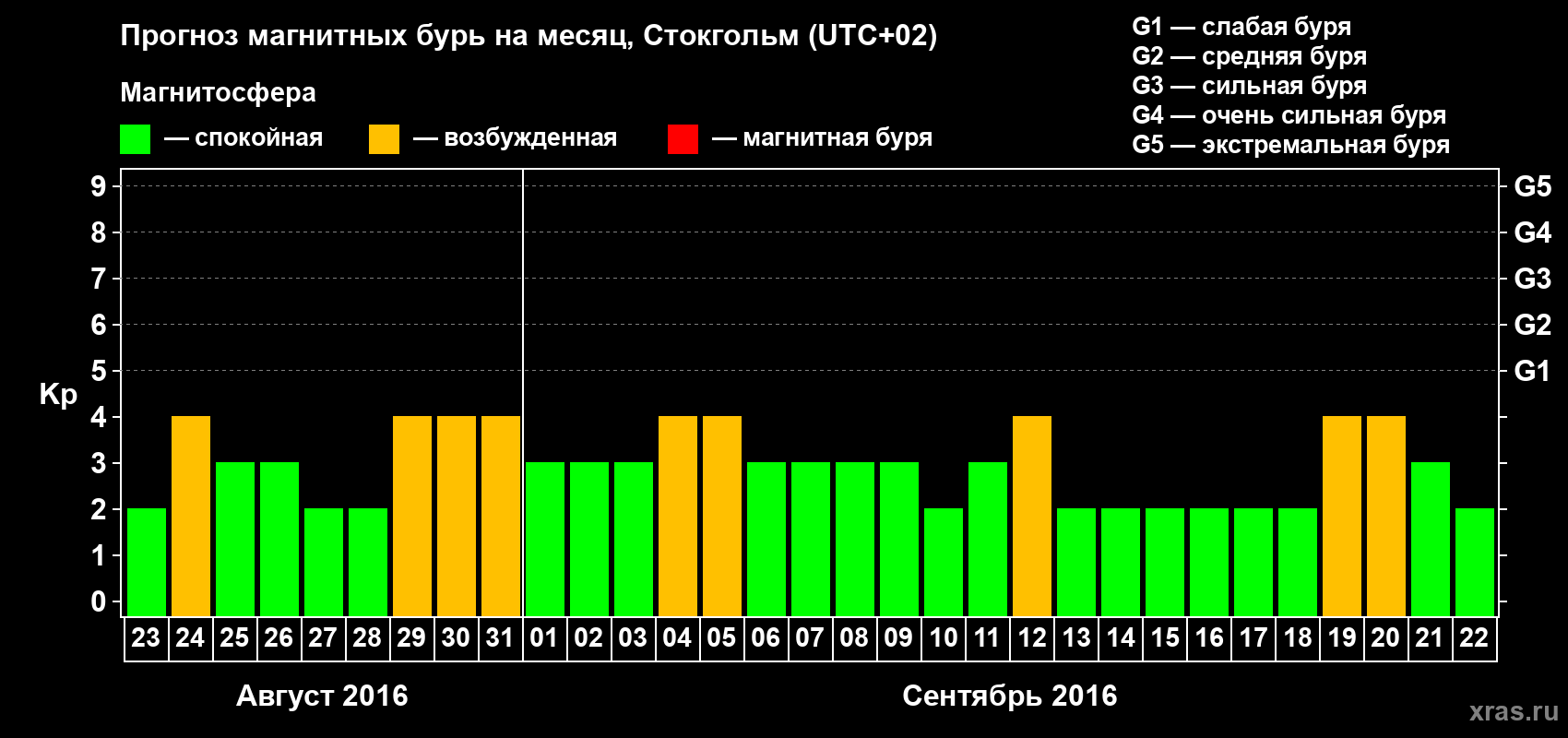 Прогноз магнитных бурь в Стокгольме — 23 августа 2016 года