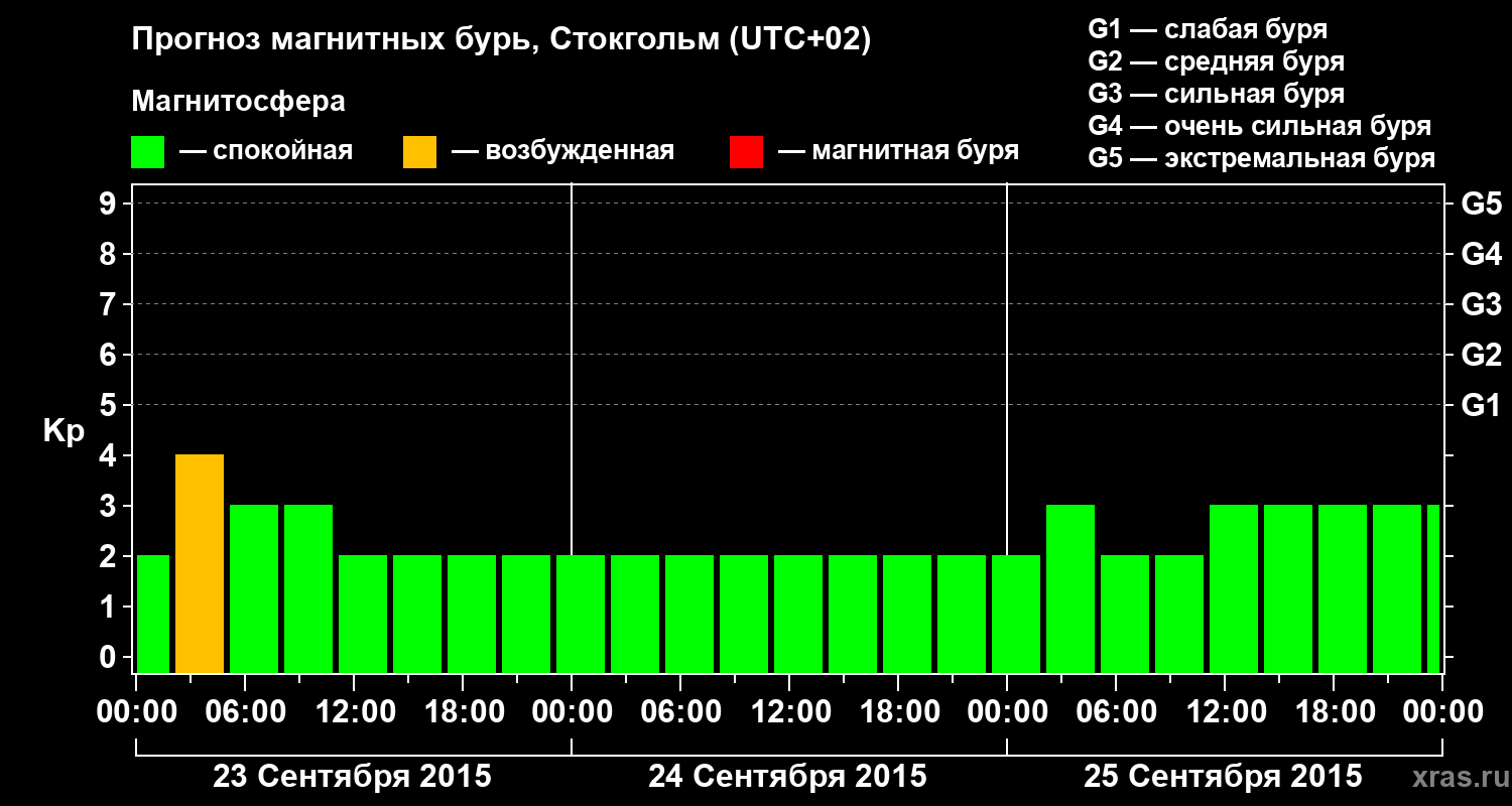 Прогноз магнитных бурь в Стокгольме — 23 сентября 2015 года
