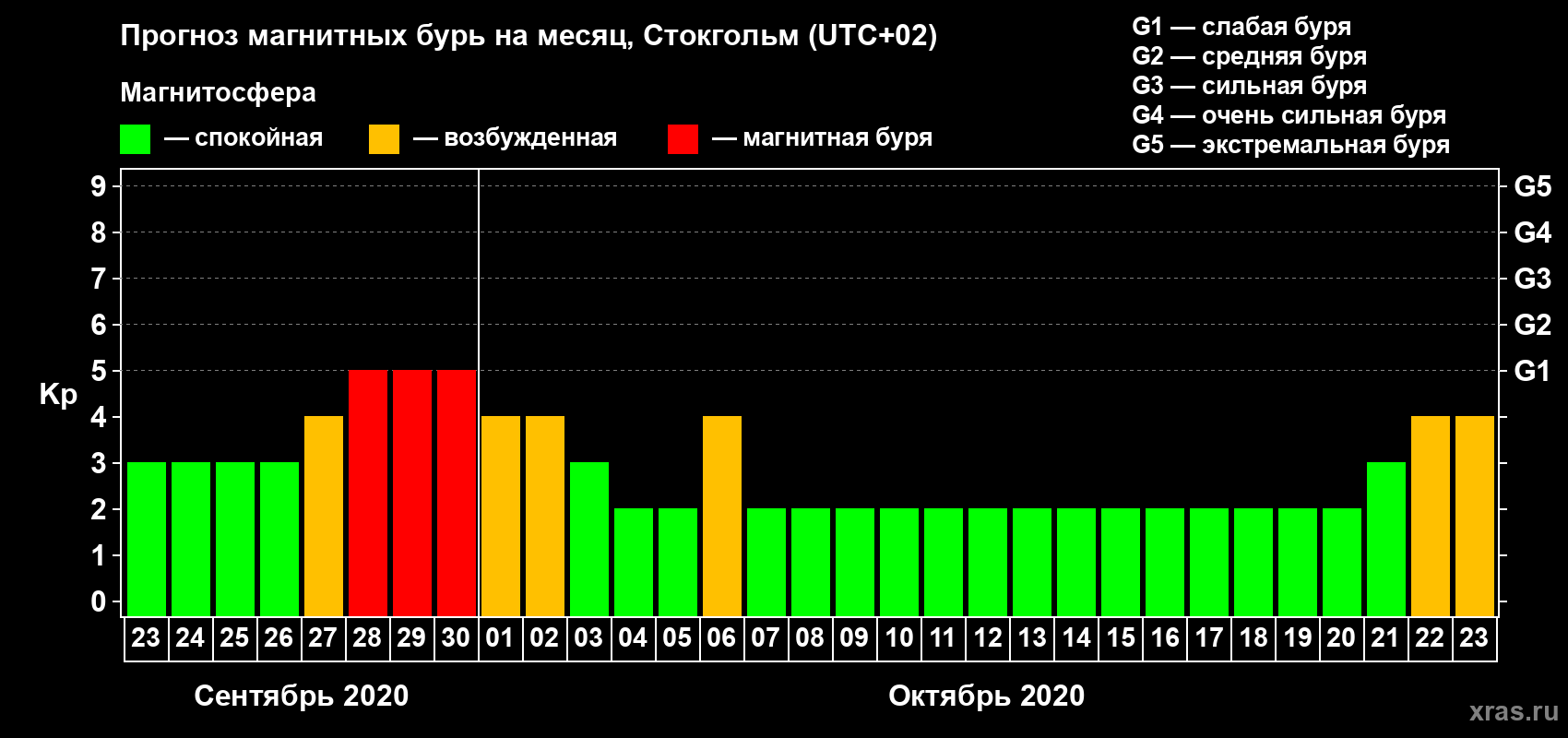 Прогноз магнитных бурь в Стокгольме — 23 сентября 2020 года