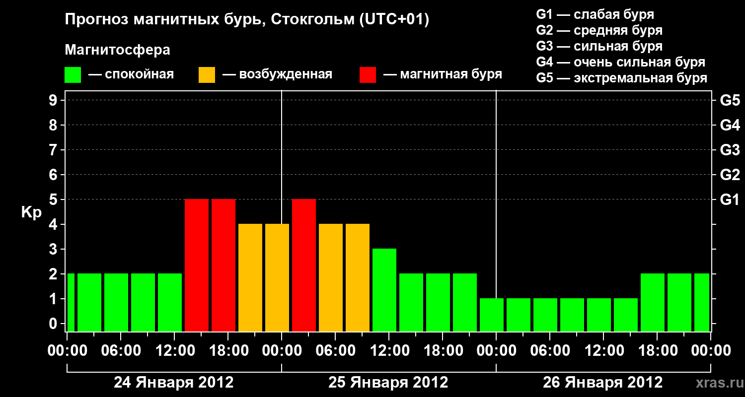 Прогноз магнитных бурь в Стокгольме — 24 января 2012 года