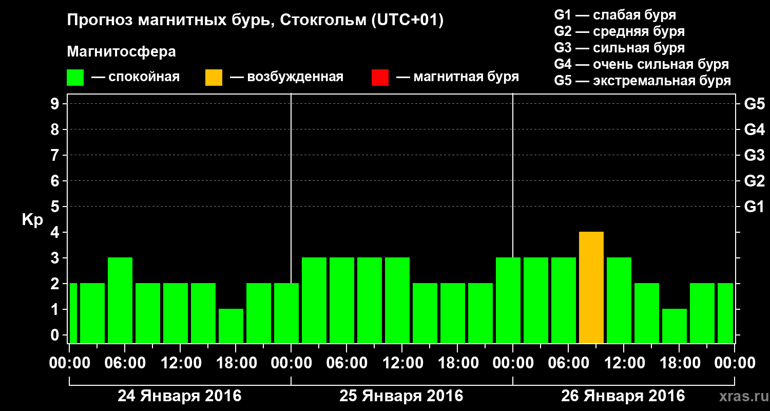 Прогноз магнитных бурь в Стокгольме — 24 января 2016 года