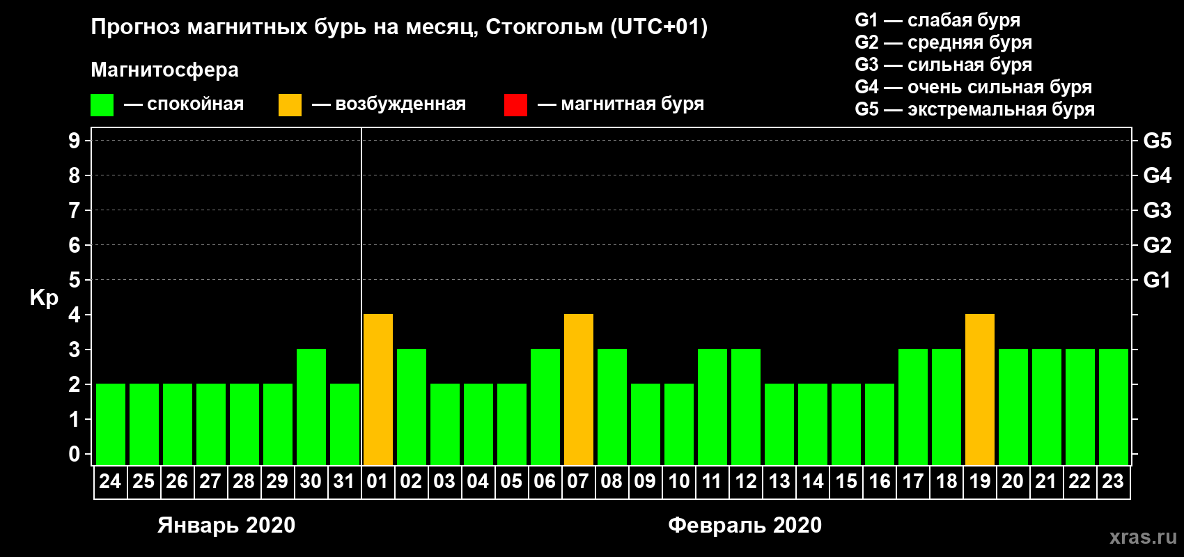 Прогноз магнитных бурь в Стокгольме — 24 января 2020 года